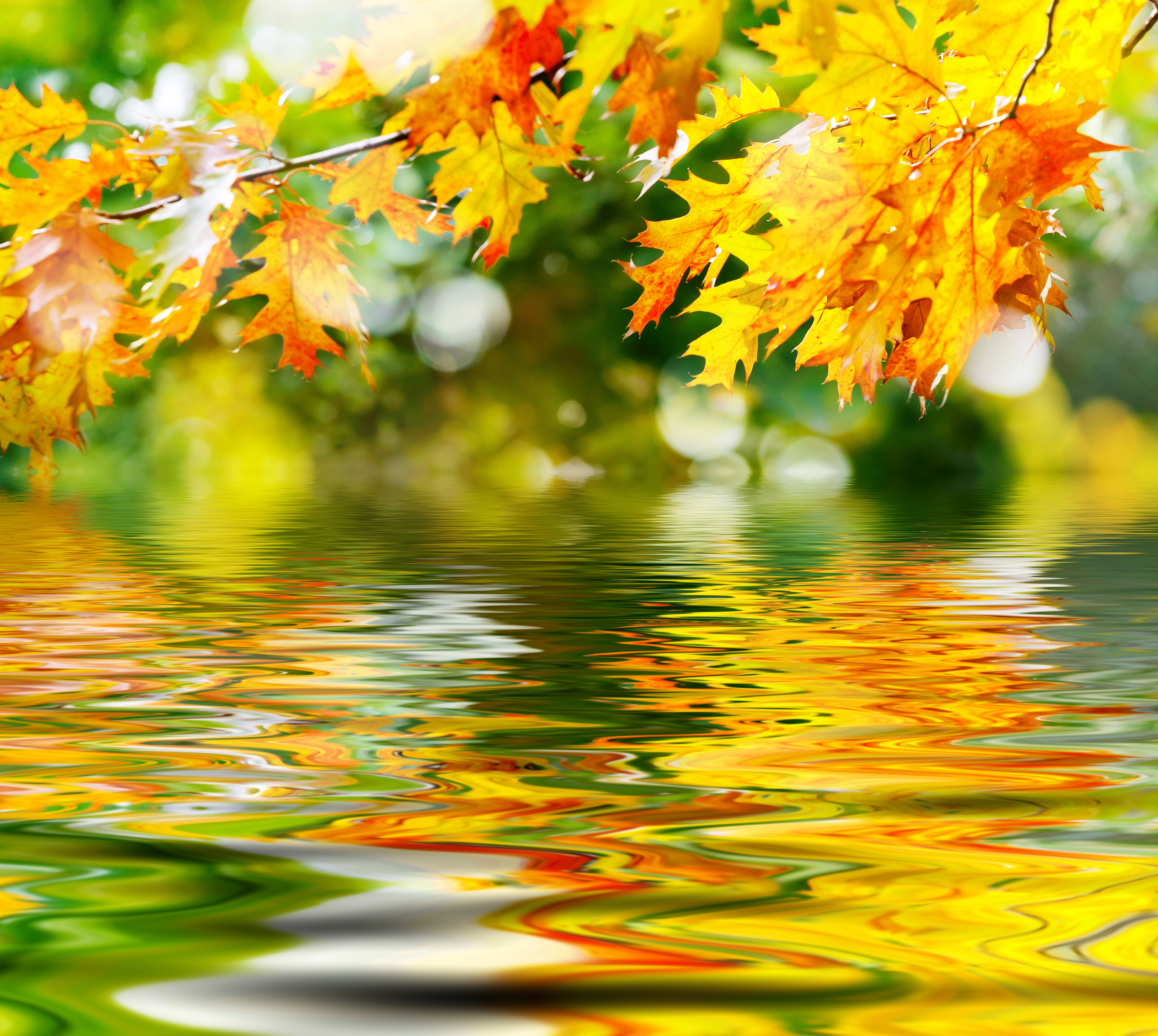This Background: "Autumn Leaves and Water Background" is part of