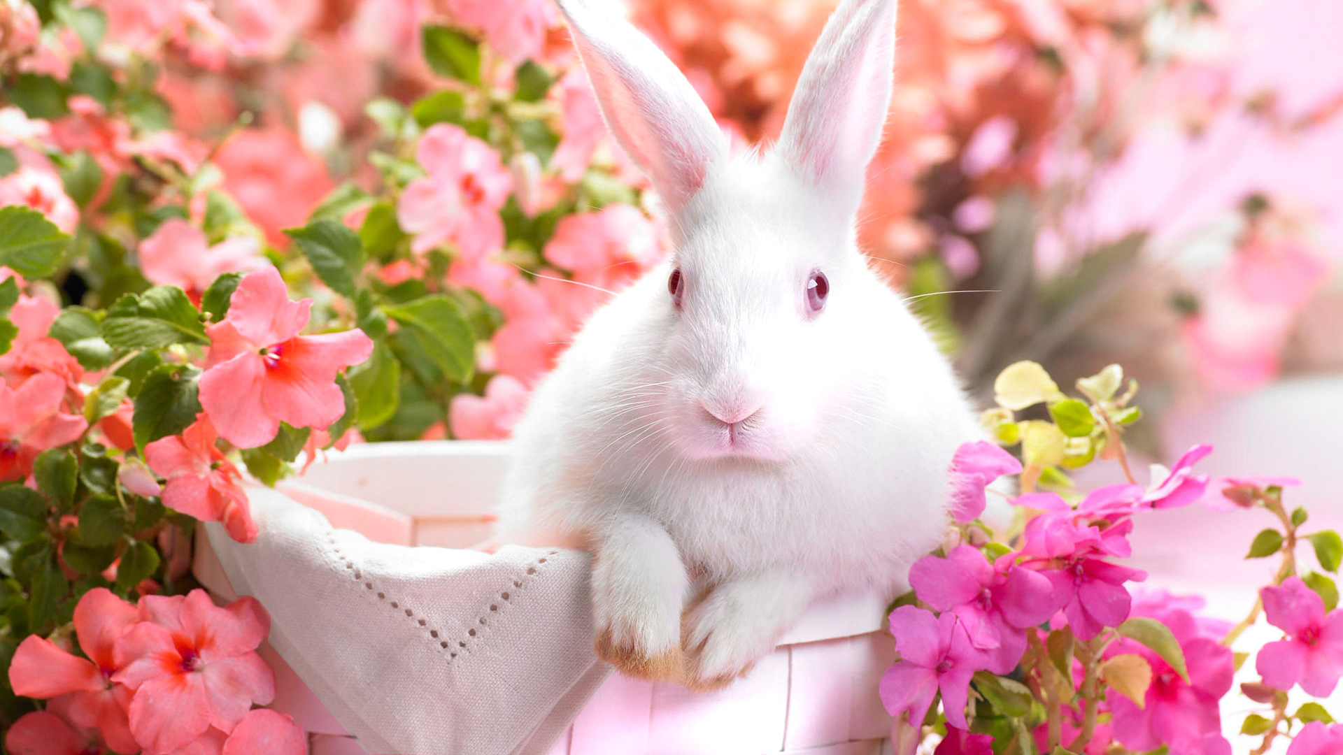 This Background: "Background with White Bunny and Flowers" is part of