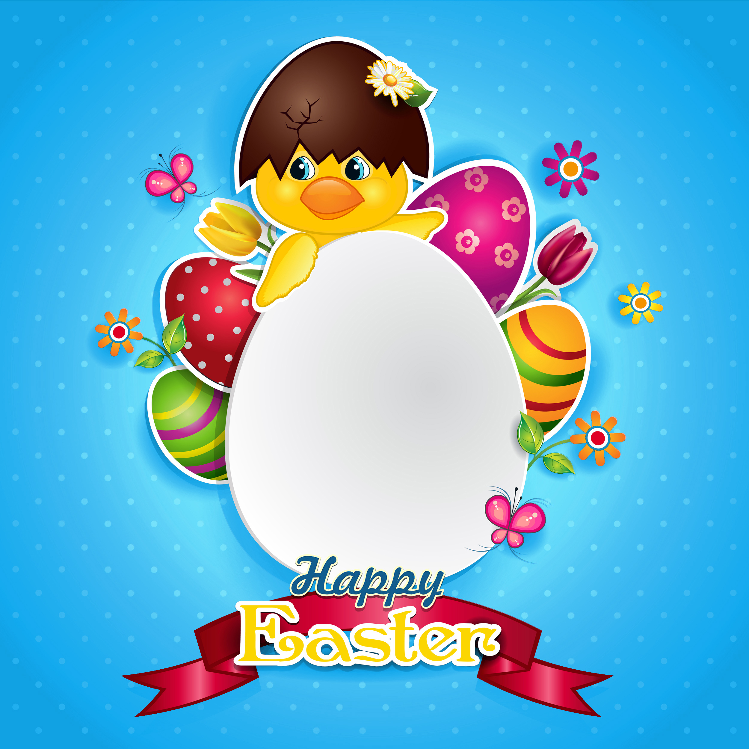 This Background: "Blue Happy Easter Background with Chiken" is part of