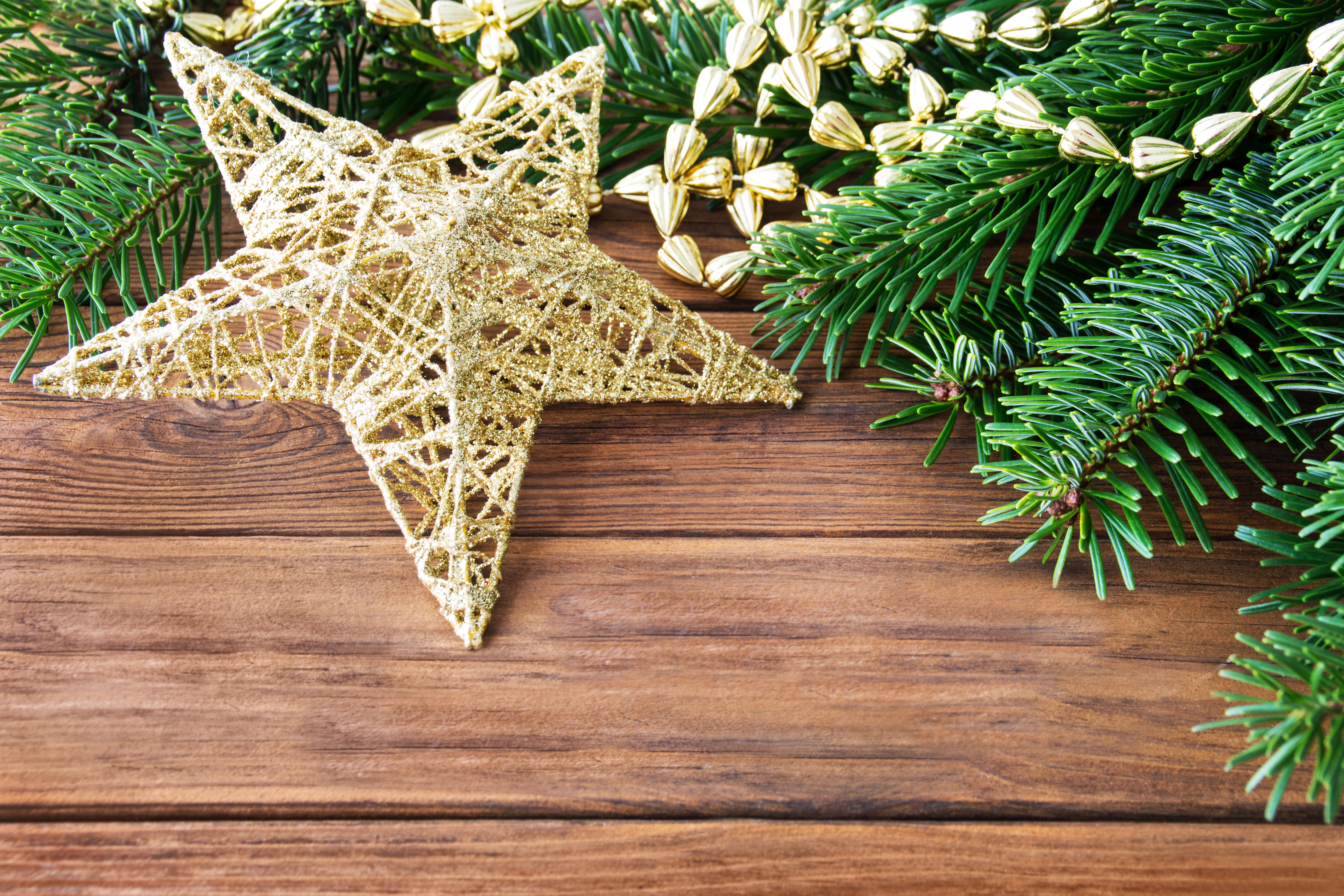 This Background: "Christmas Golden Star and Pine Branches Background" is part of