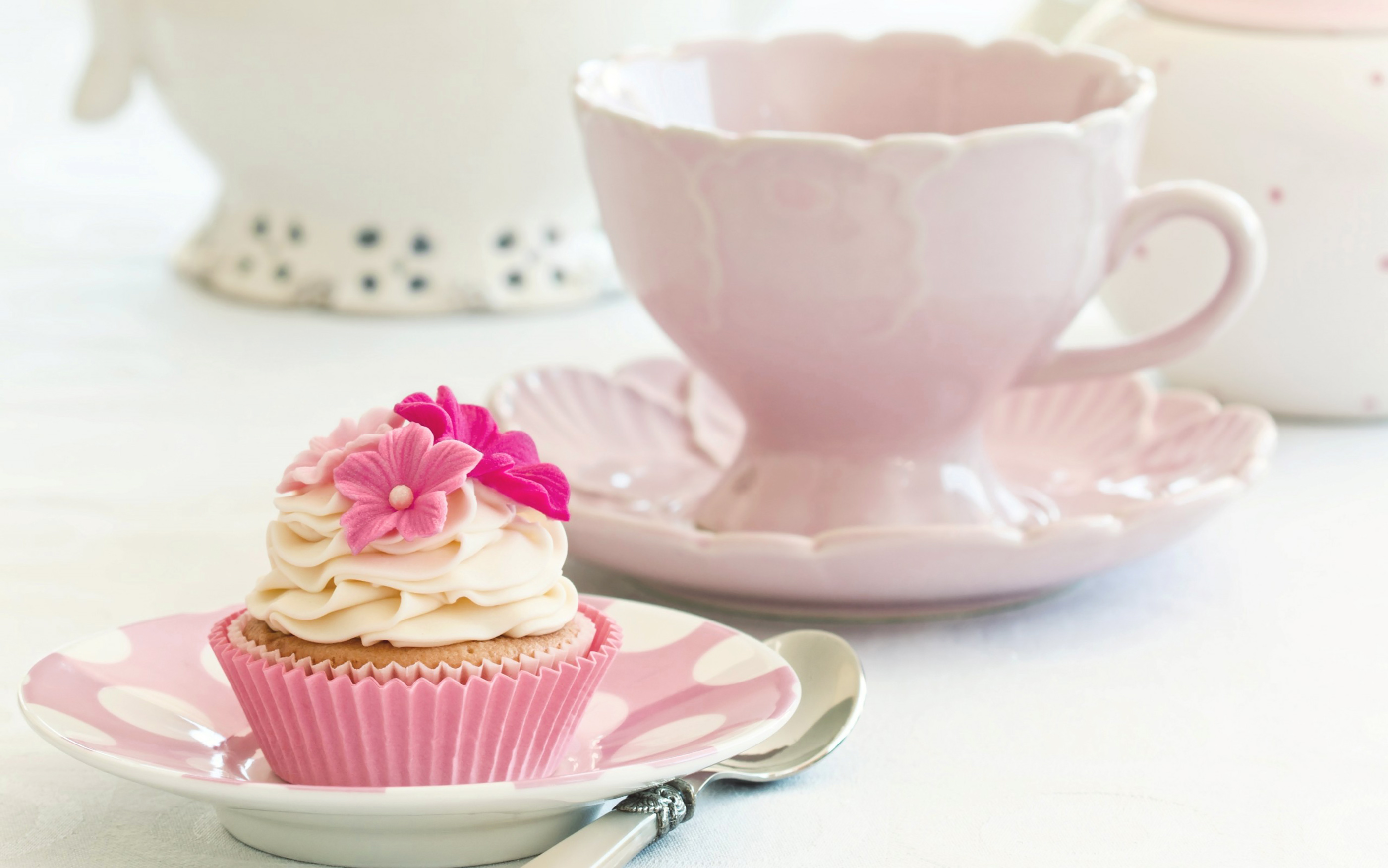 This Background: "Delicate Background with Pink Cake with Flowers" is part of
