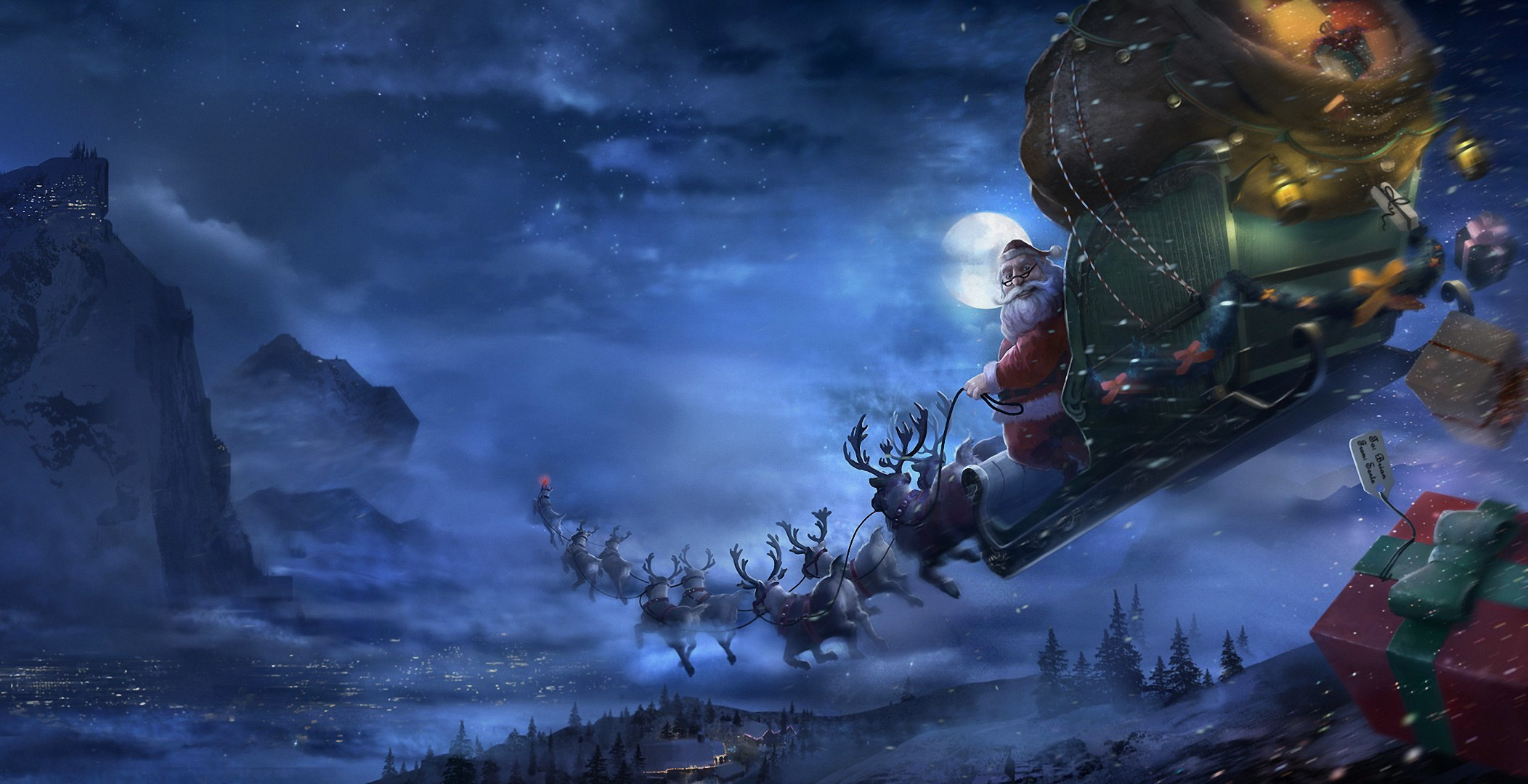 This Background: "Santa with Sleigh and Reindeers in the Sky Christmas Background" is part of