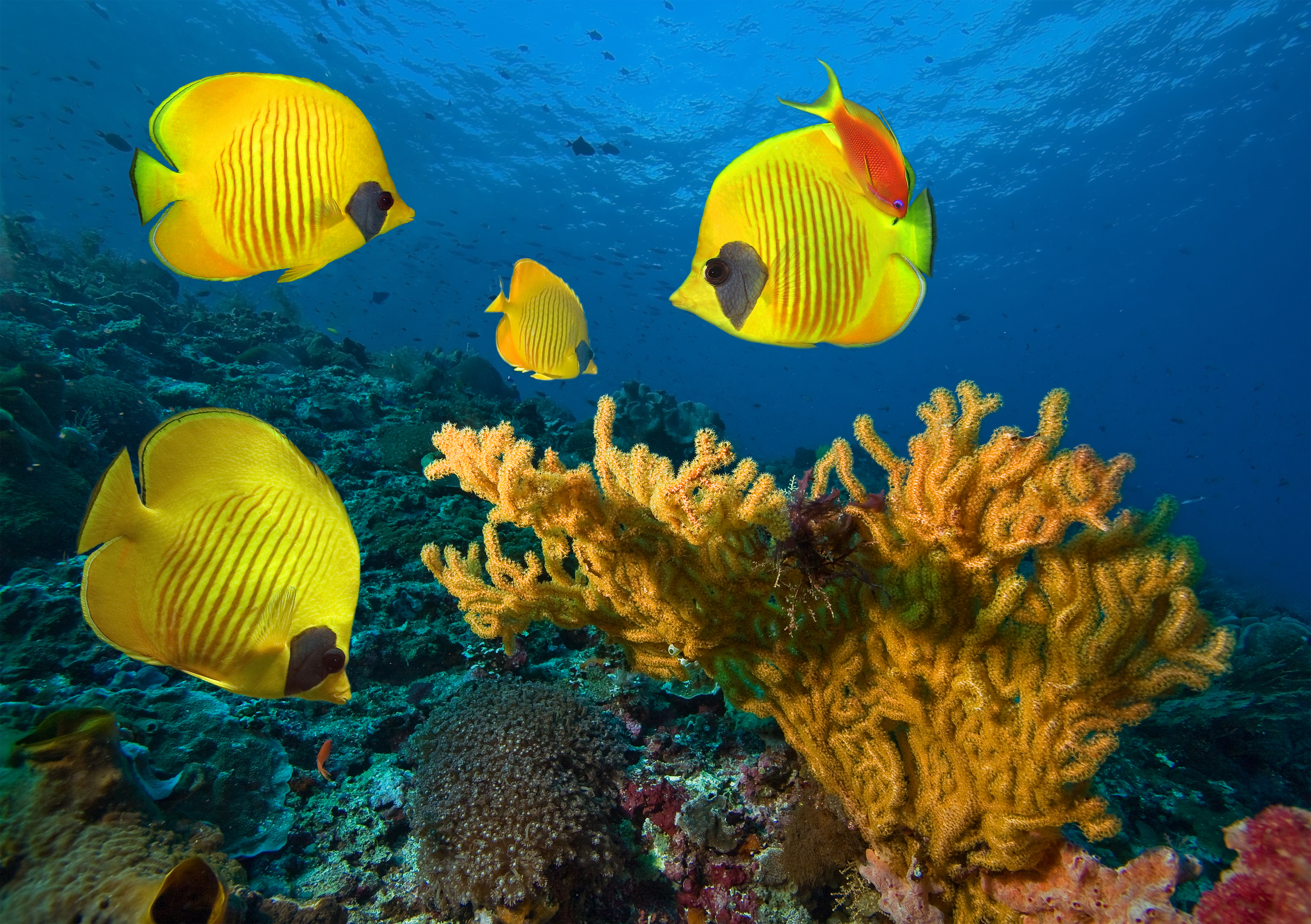 This Background: "Underwater Background with Yellow Fishes" is part of