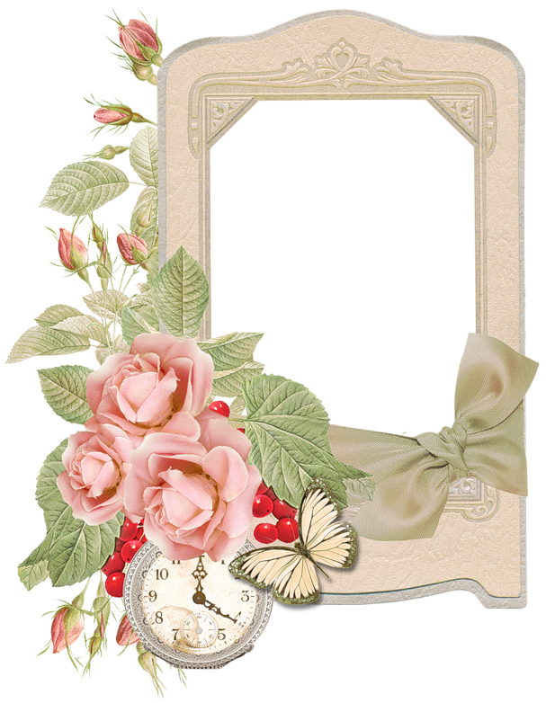 This Frame: "Cream PNG Frame with Clock and Roses" is part of
