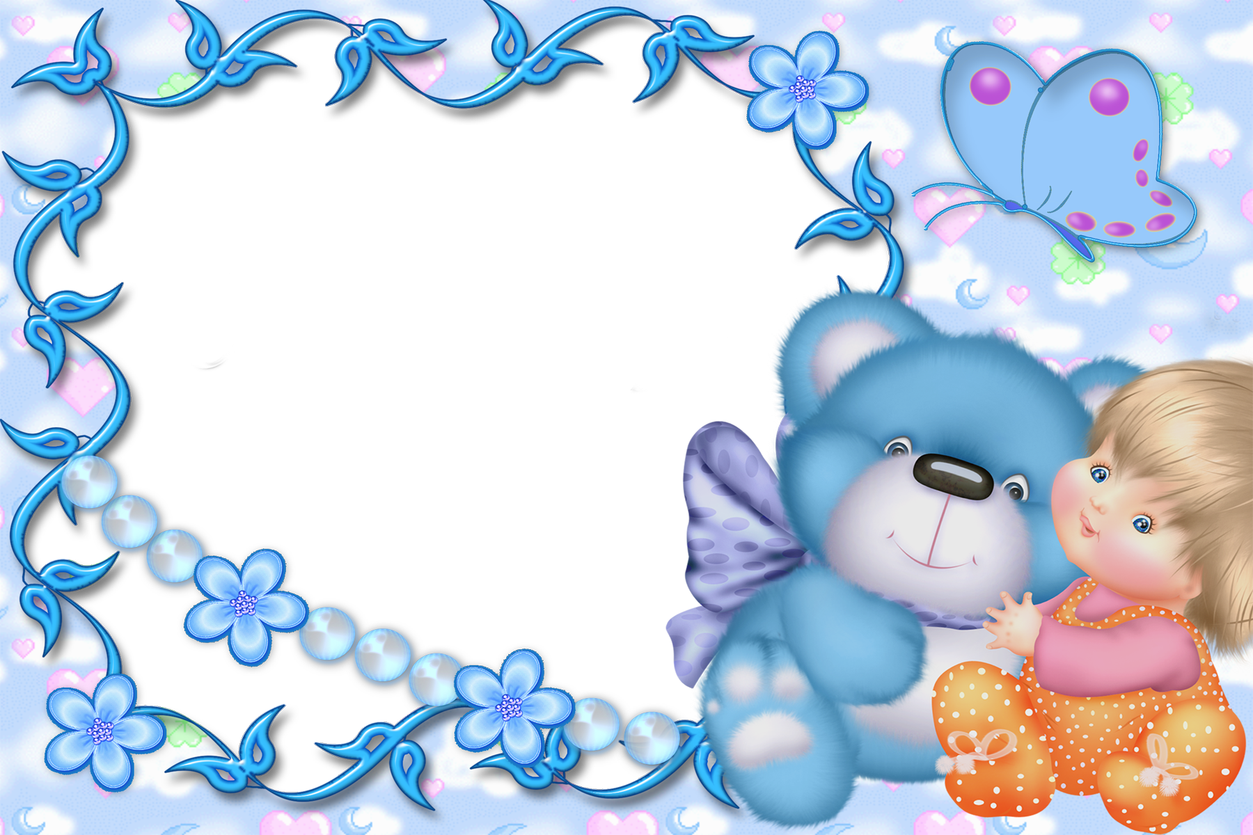 This Frame: "Cute Kids Blue Transparent Frame with Kid and Teddy Bear" is part of
