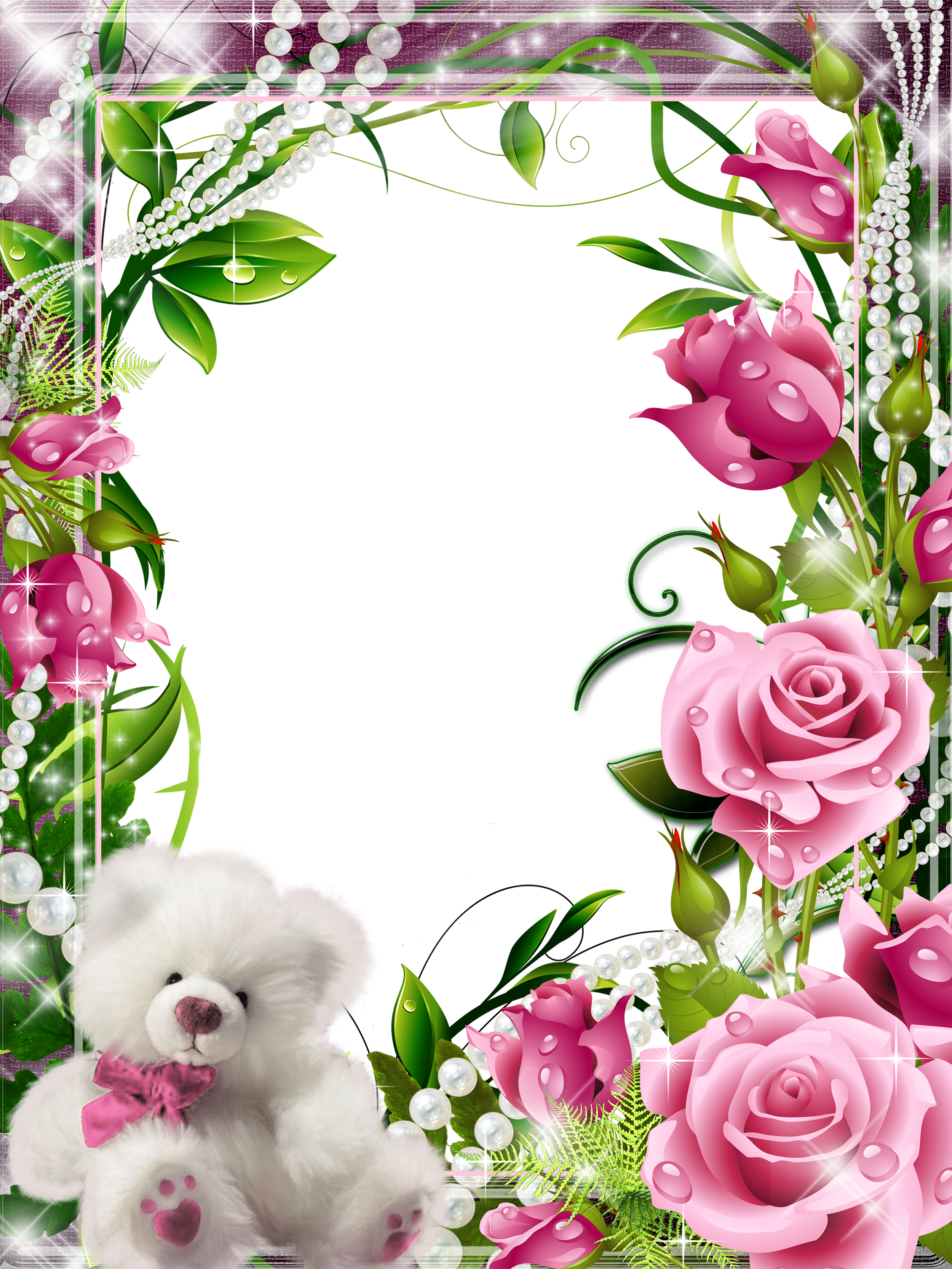 This Frame: "Transparent Frame with Pink Roses and White Teddy" is part of