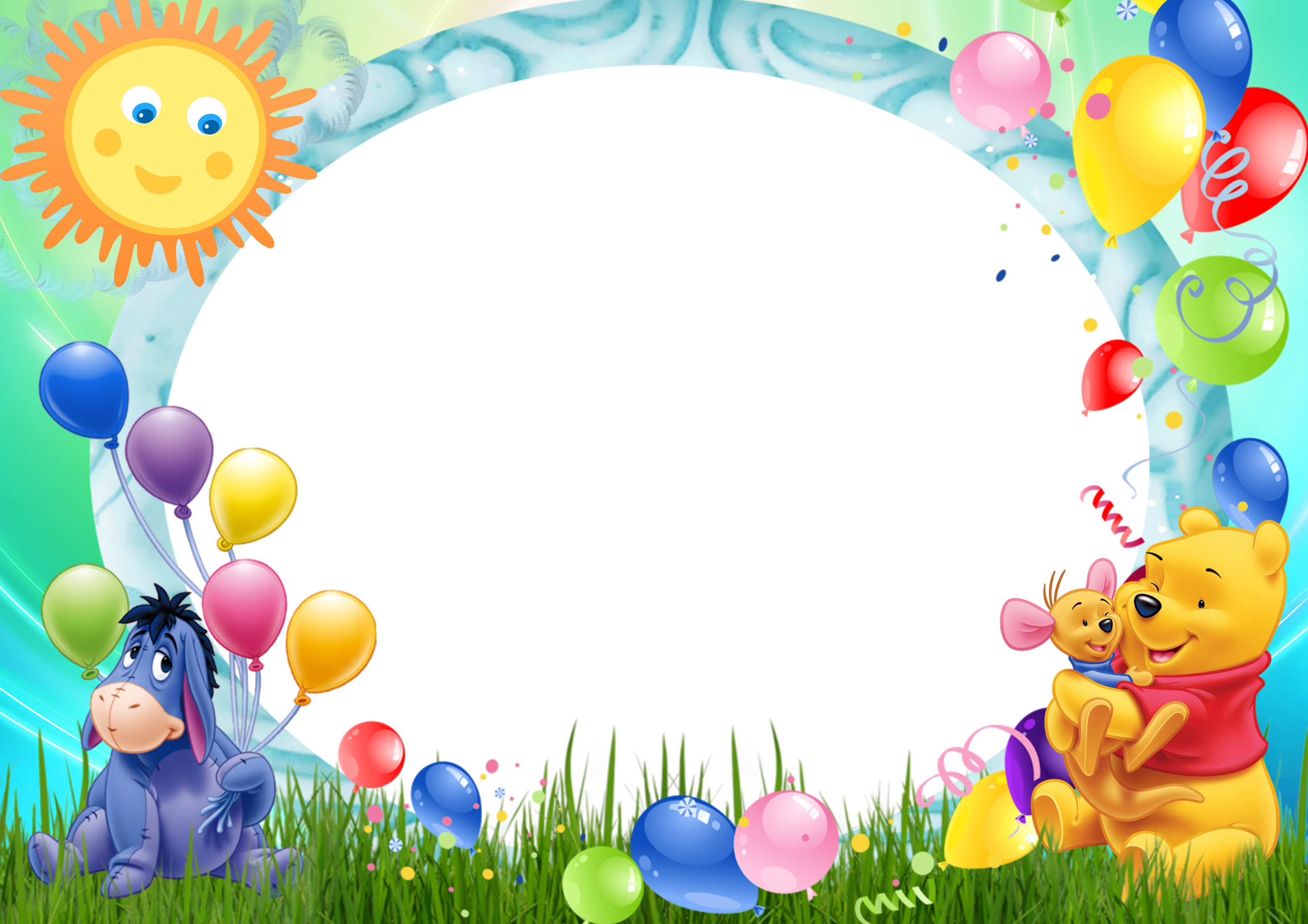 This Frame: "Winnie the Pooh with Balloons Kids Transparent Frame" is part of