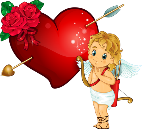 This Clipart Image: "Cupidon with Heart Arrow and Rose Clipart" is part of