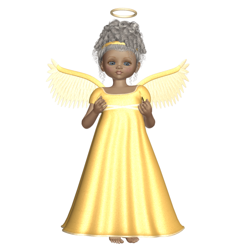 This Image: "Cute 3D Angel with Gold Dress PNG Picture" is part of