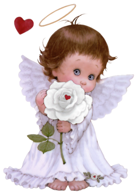 This Clipart Image: "Cute Angel with White Rose Free PNG Clipart Picture" is part of
