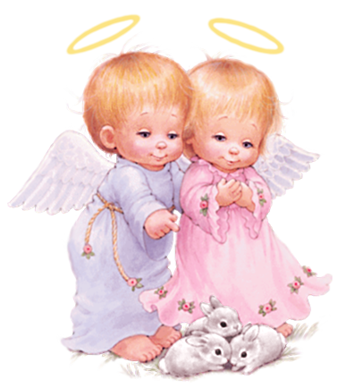 This Clipart Image: "Cute Baby Angels with Bunnies Free PNG Clipart Picture" is part of