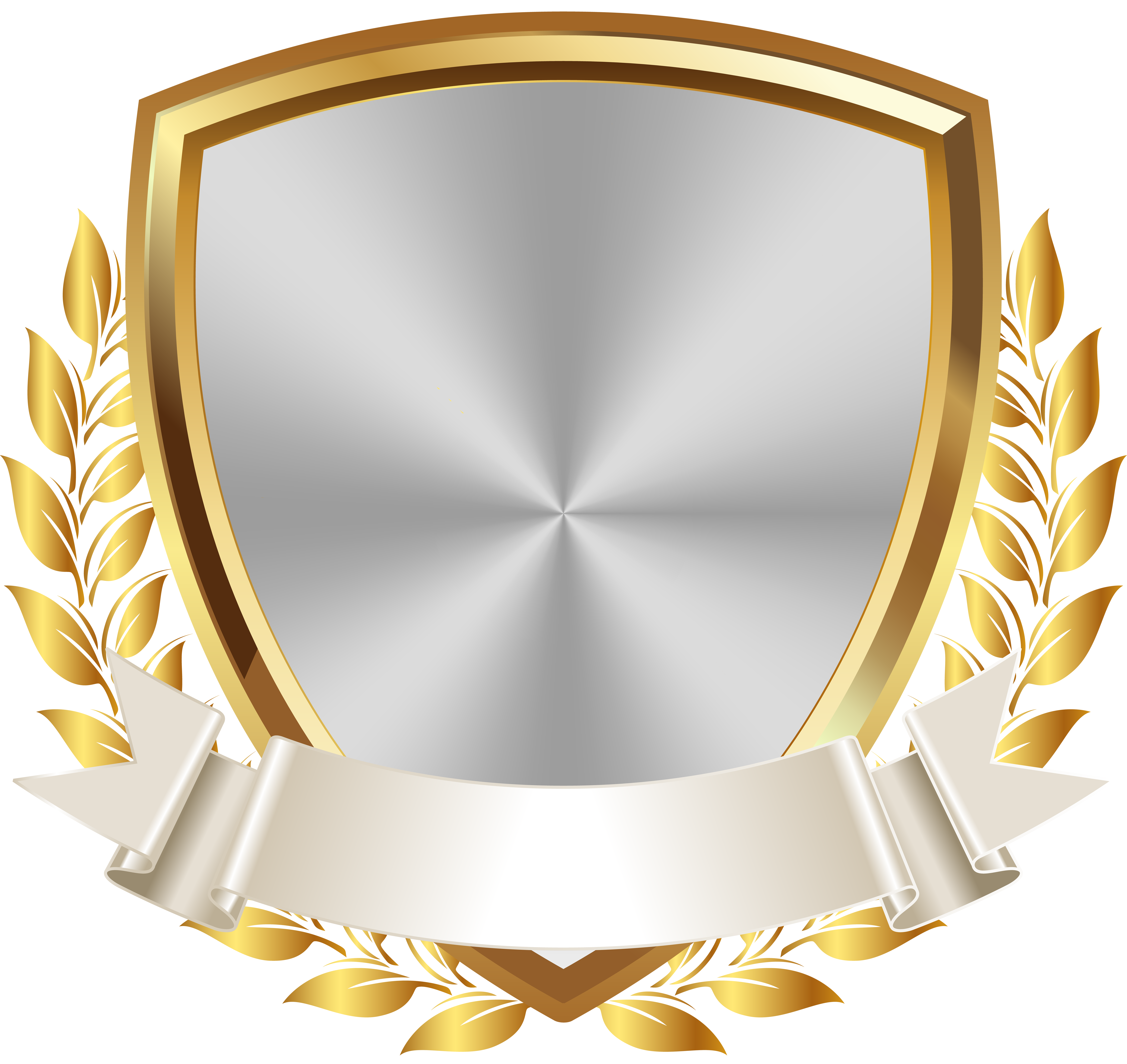 This Clipart Image: "Gold White Badge with Banner PNG Clip Art Image" is part of