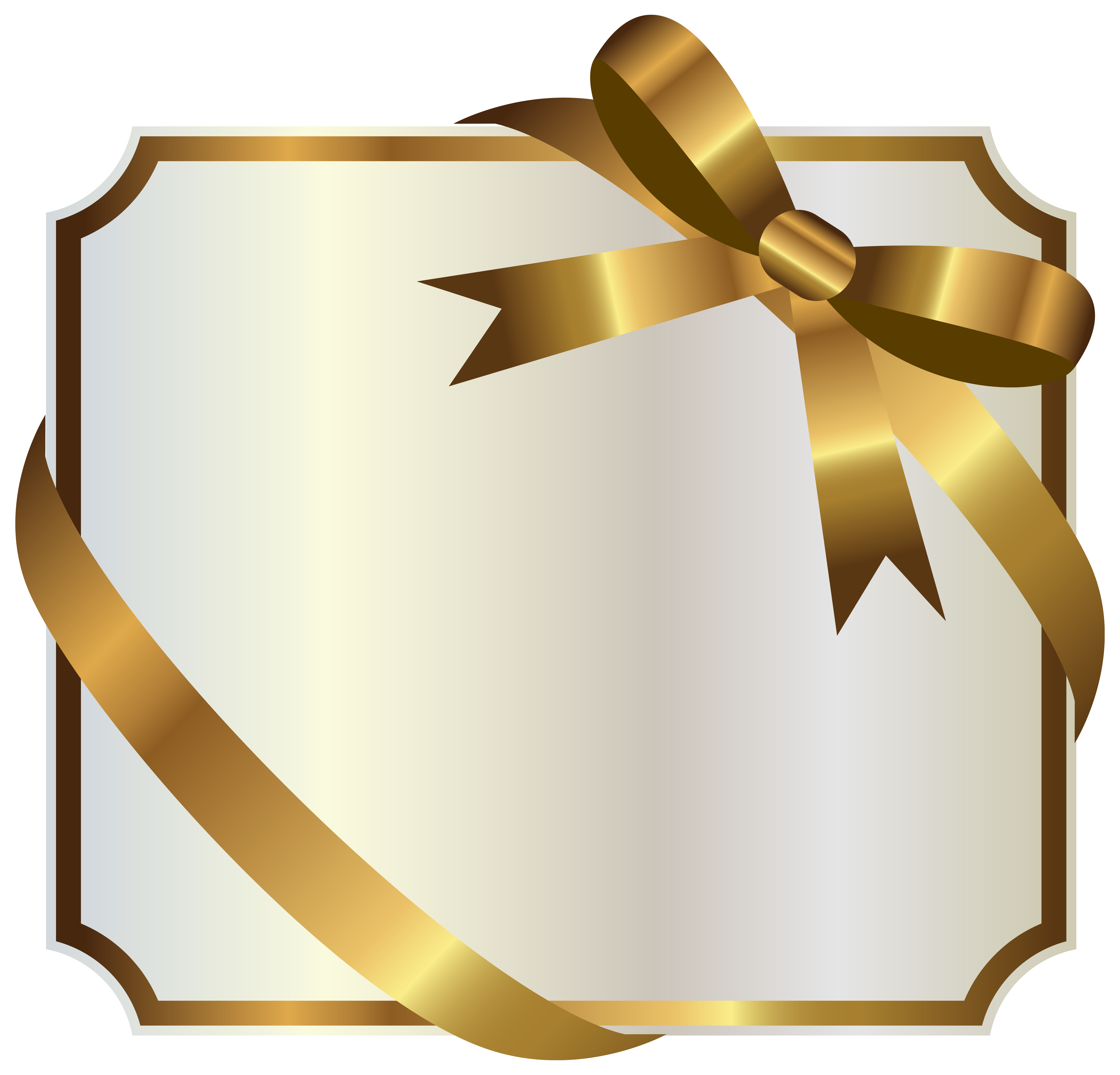 This Clipart Image: "White Label with Gold Bow PNG Clipart Image" is part of