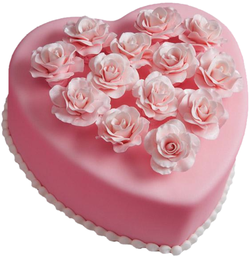 This Clipart Image: "Pink Heart Cake with Roses Clipart" is part of