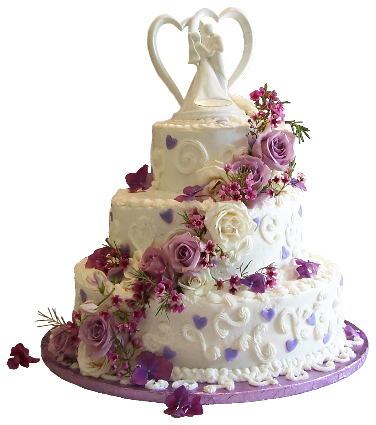 This Clipart Image: "White Wedding Cake with Purple Roses PNG Clipart" is part of