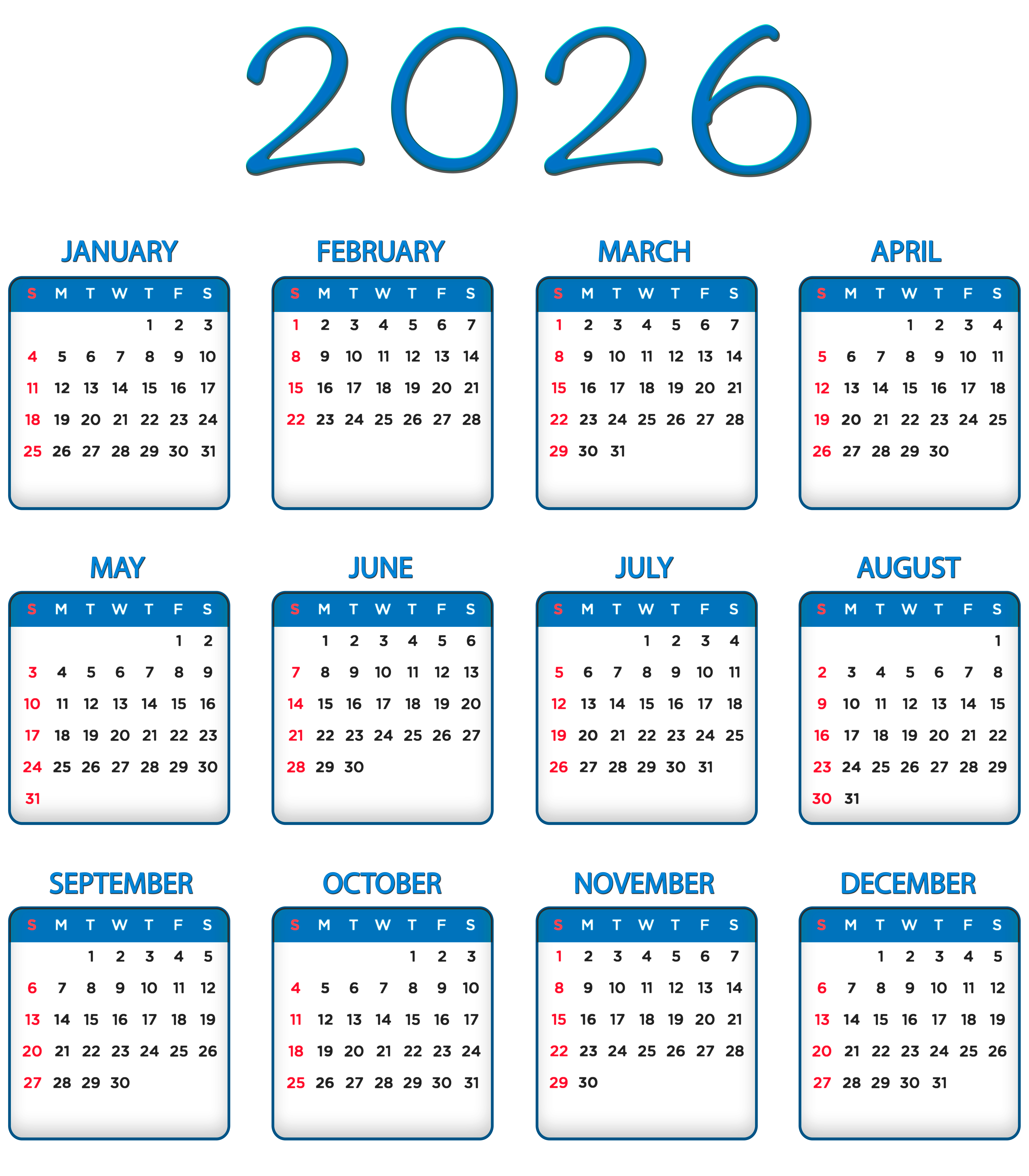 This Image: "2026 Blue Calendar Transparent Image PNG" is part of