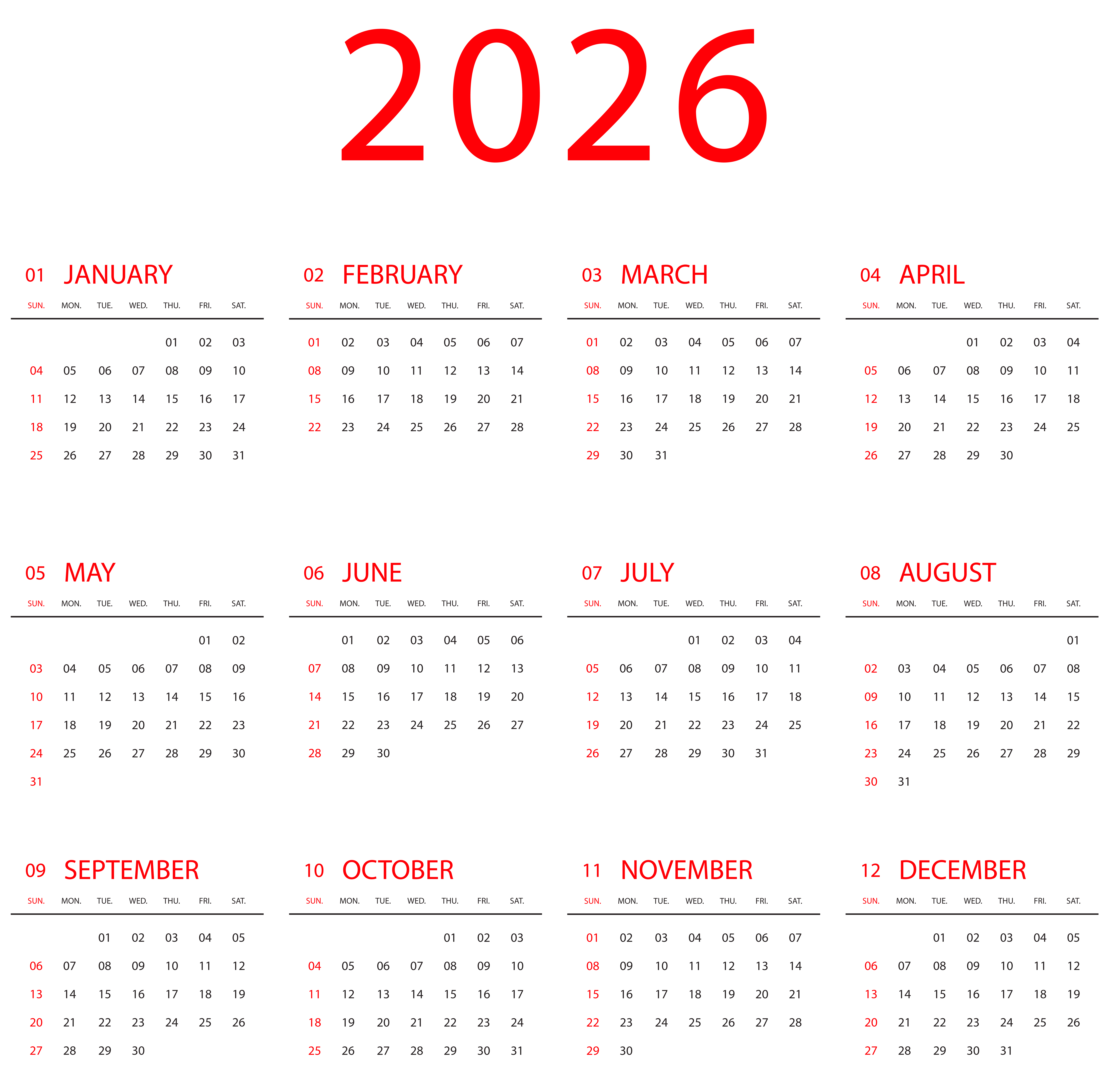 This Clipart Image: "2026 Calendar US Transparent PNG Clipart" is part of