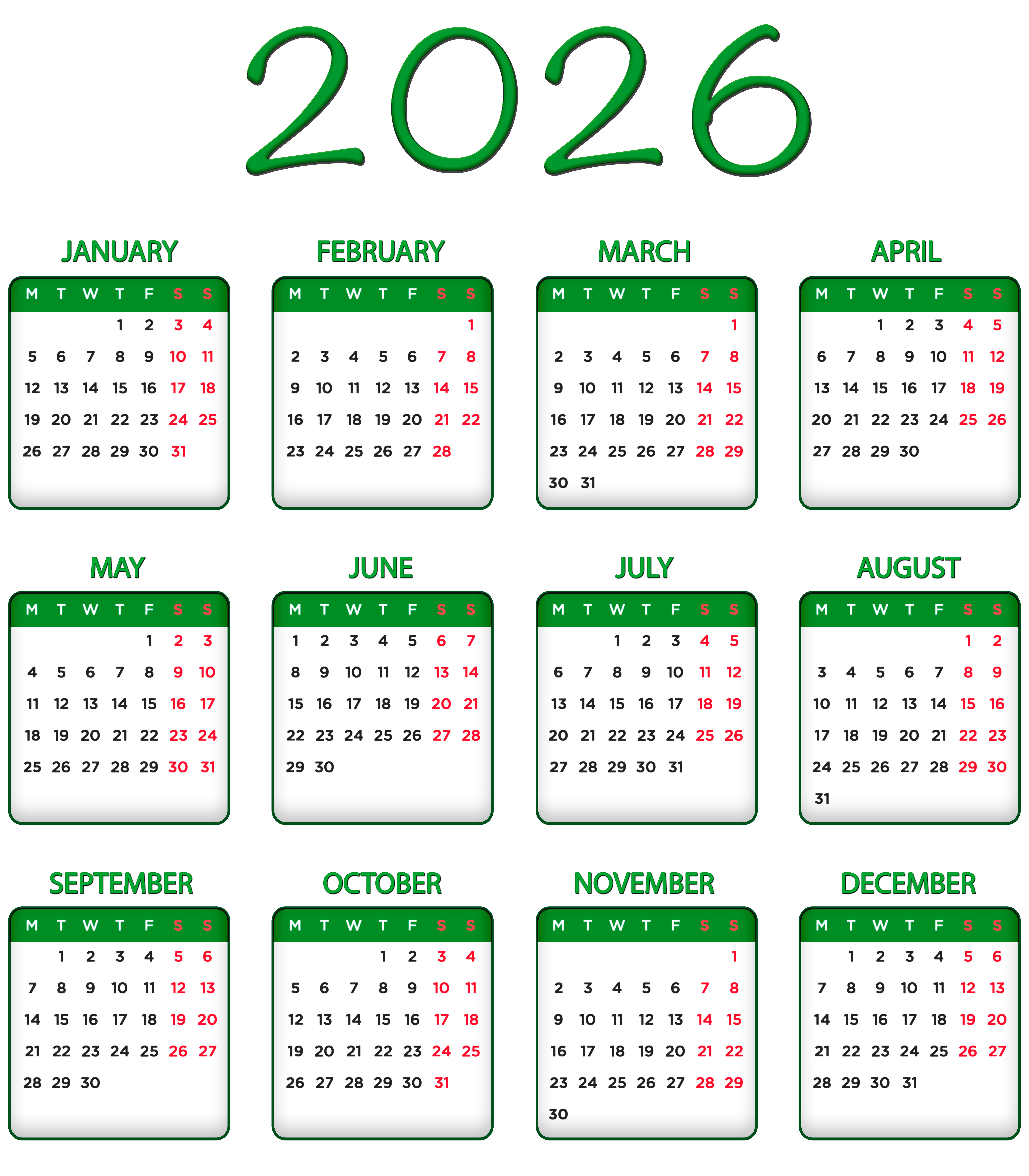 This Image: "2026 Green EU Calendar Transparent Image PNG" is part of