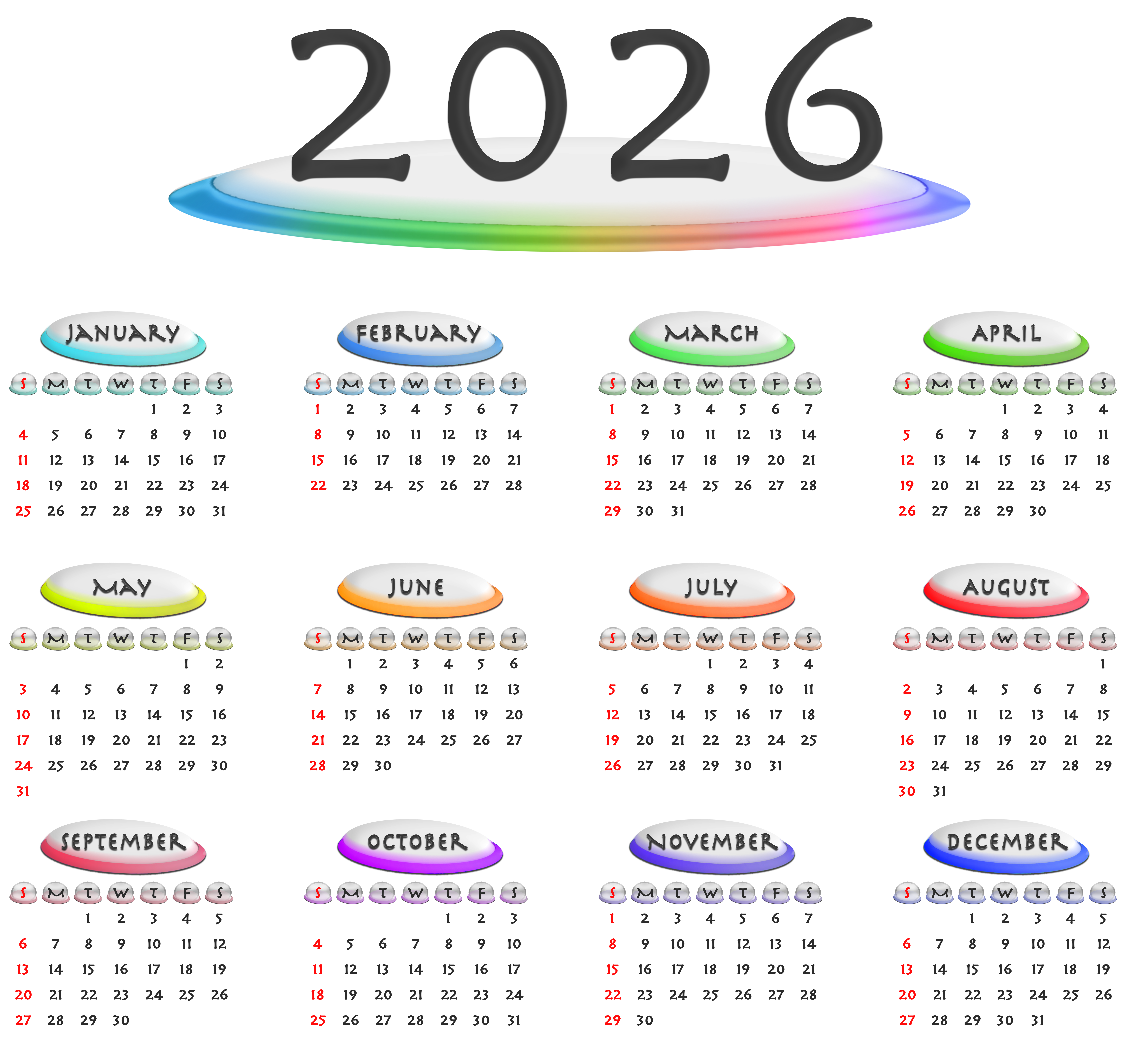 This Image: "2026 Transparent Retro Colors US Calendar" is part of