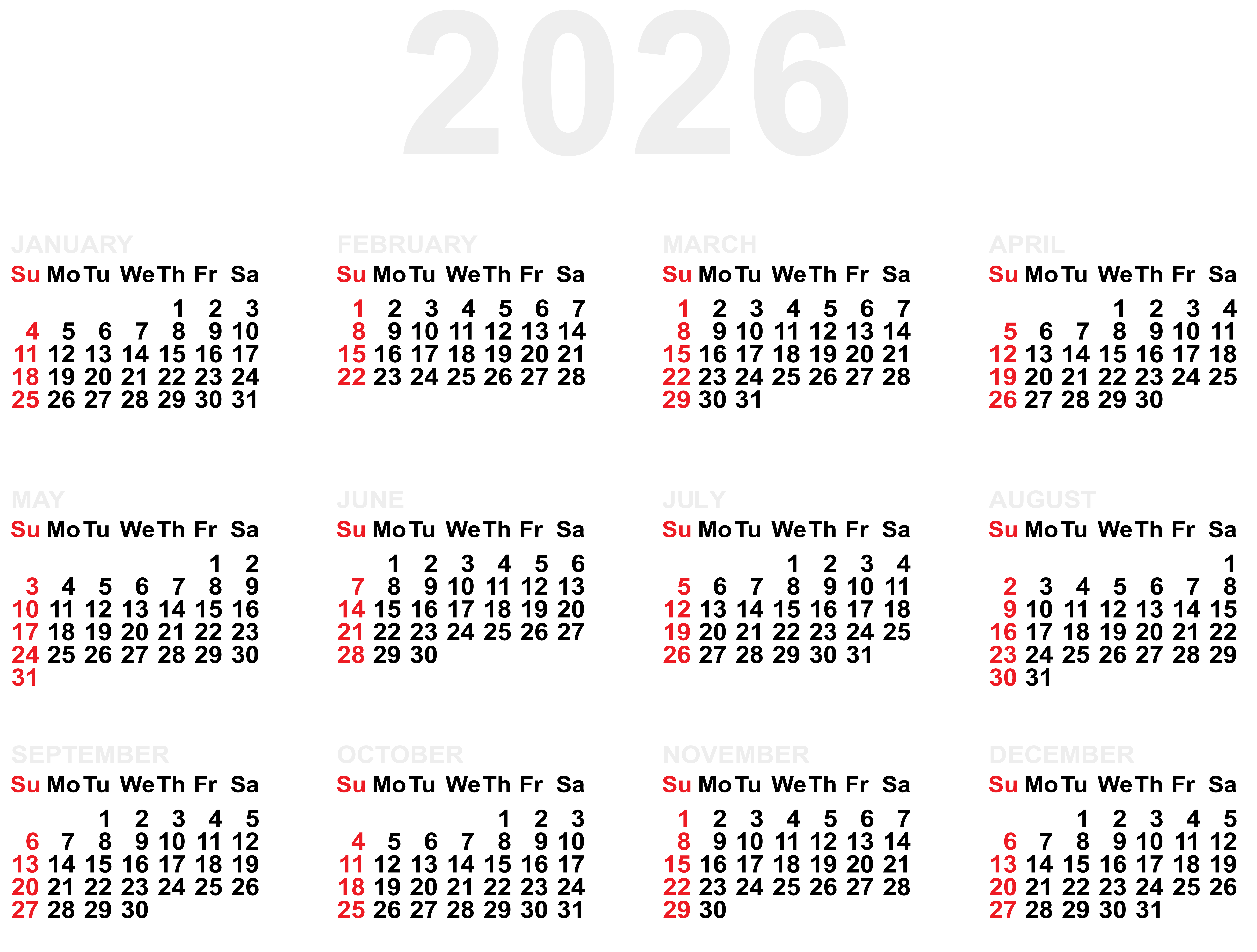 This Clipart Image: "2026 US Calendar PNG Clipart" is part of