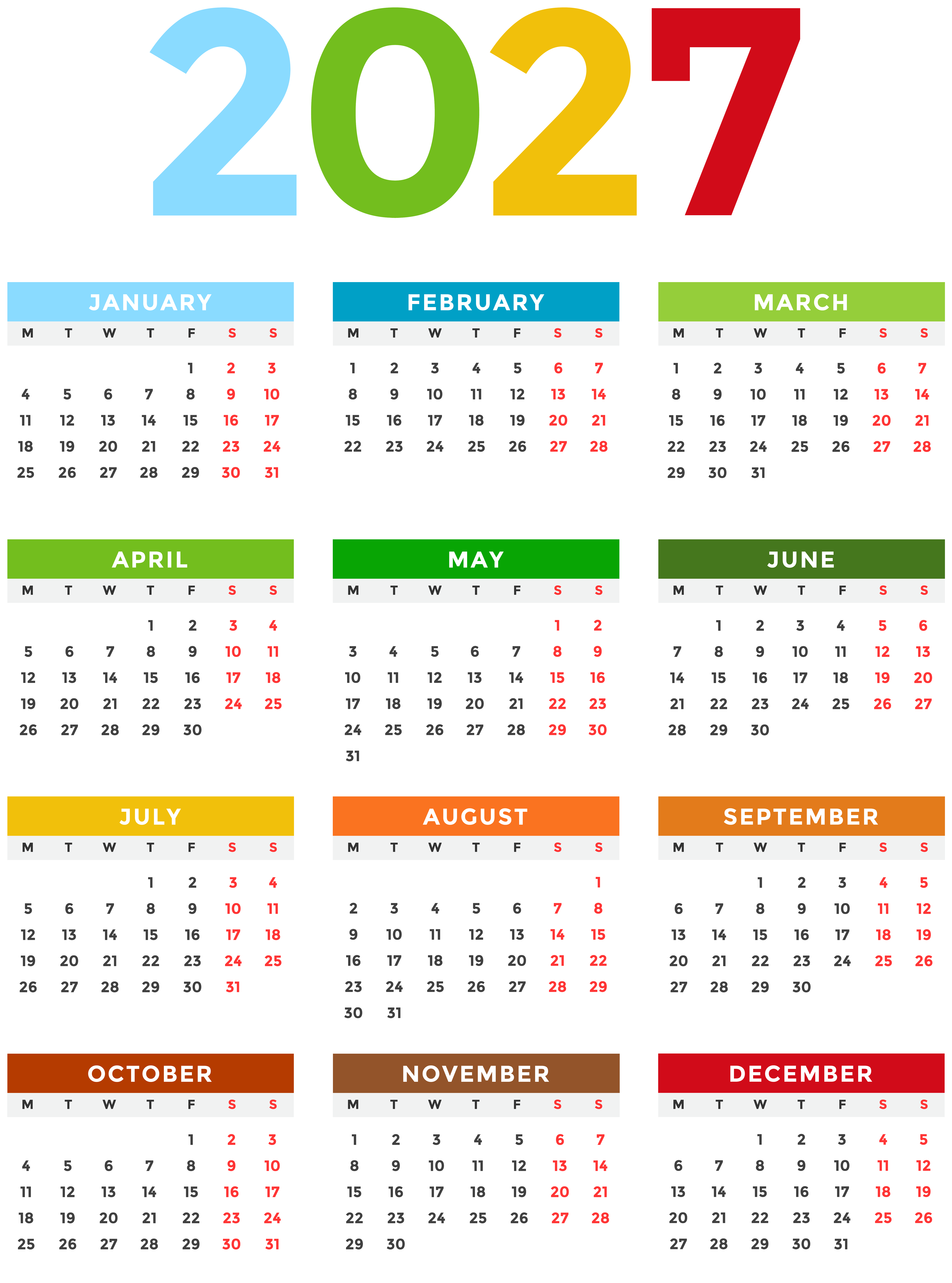 This Image: "2027 Calendar EU Colorful Transparent Image" is part of