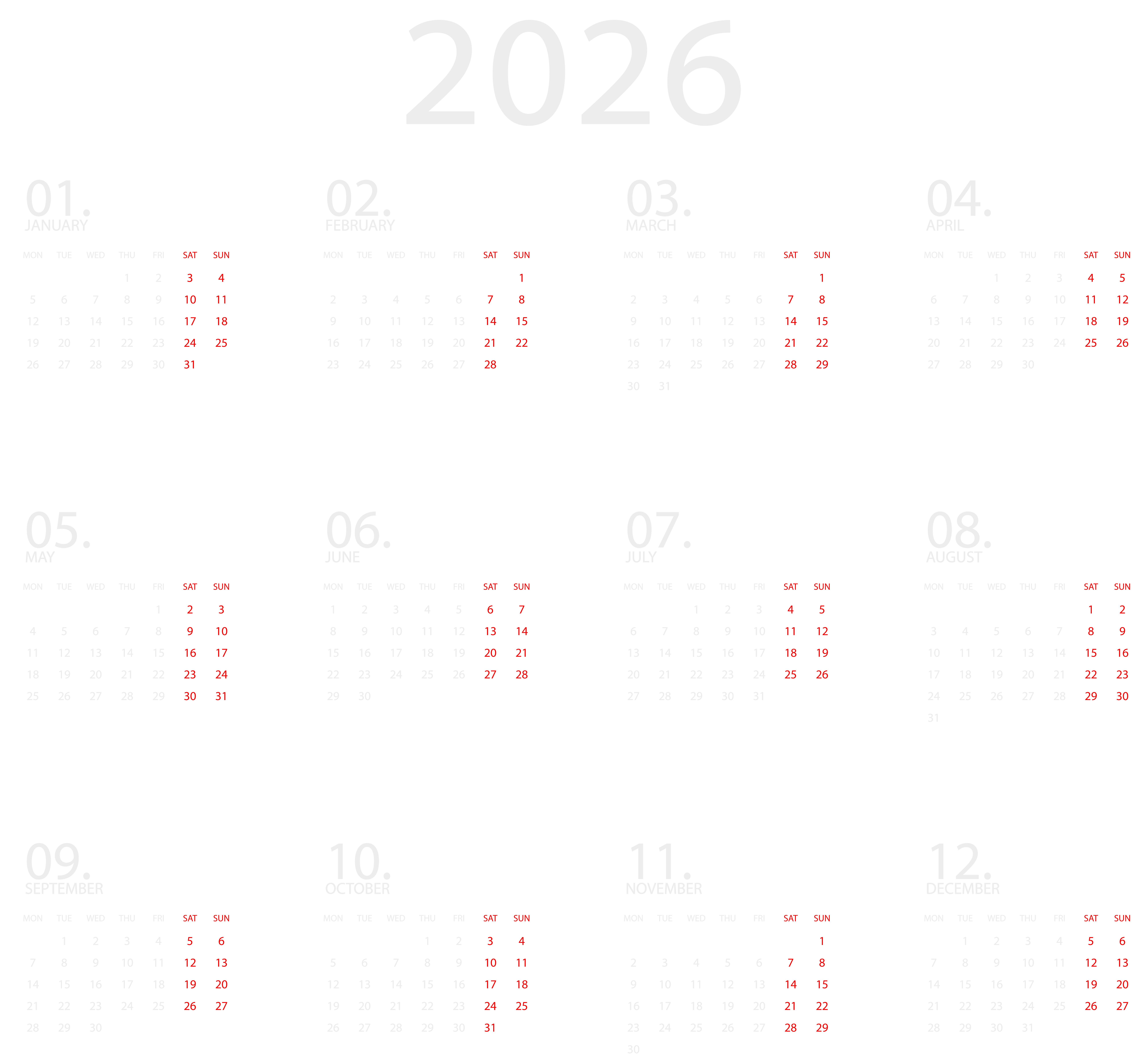 This Clipart Image: "Calendar 2026 EU White Transparent Clipart" is part of
