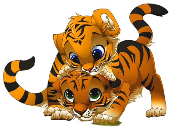 This Clipart Image: "Cute Little Tigers PNG Cartoon Clipart" is part of