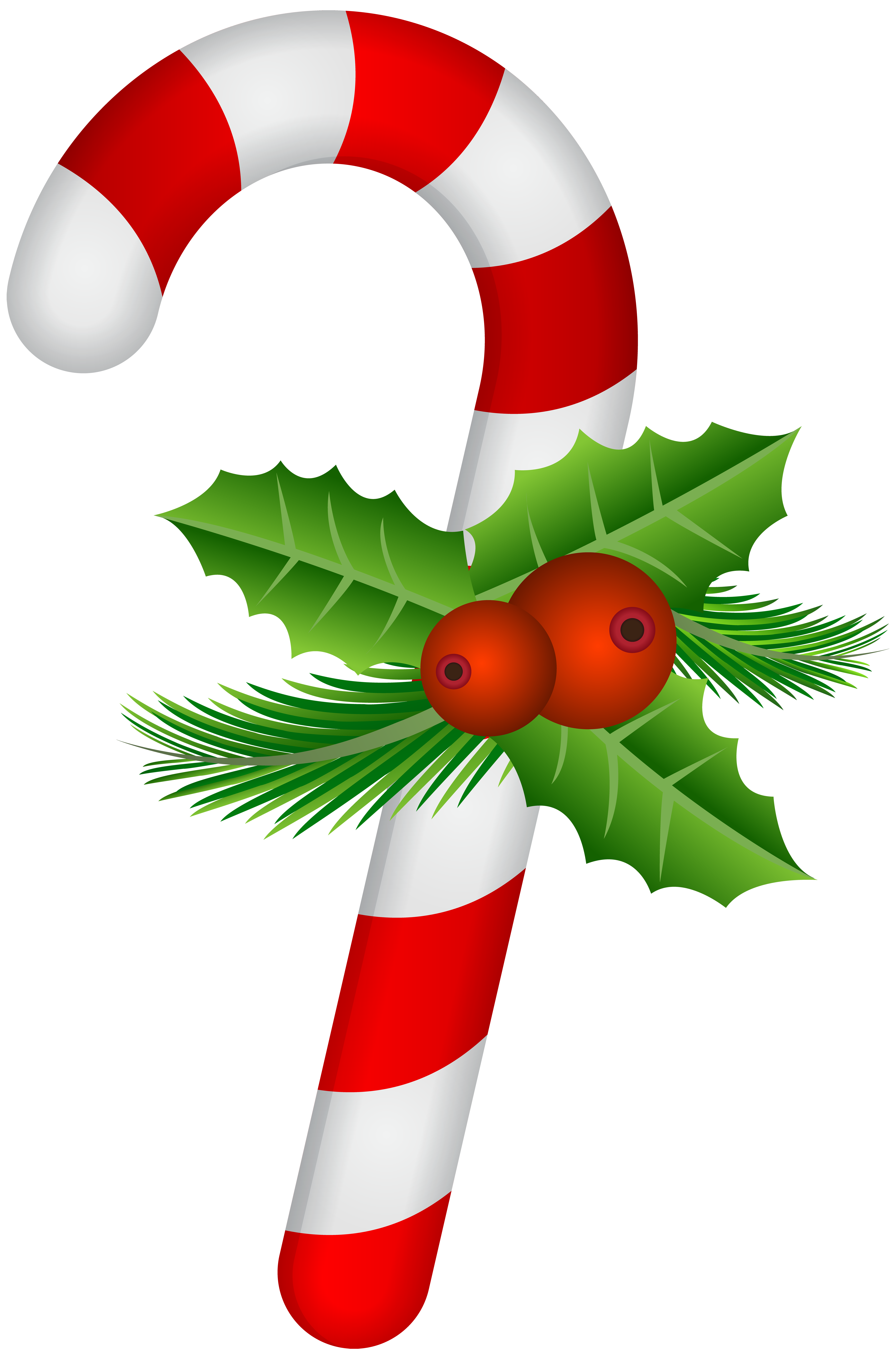 This Clipart Image: "Candy Cane with Holly Transparent PNG Clip Art" is part of