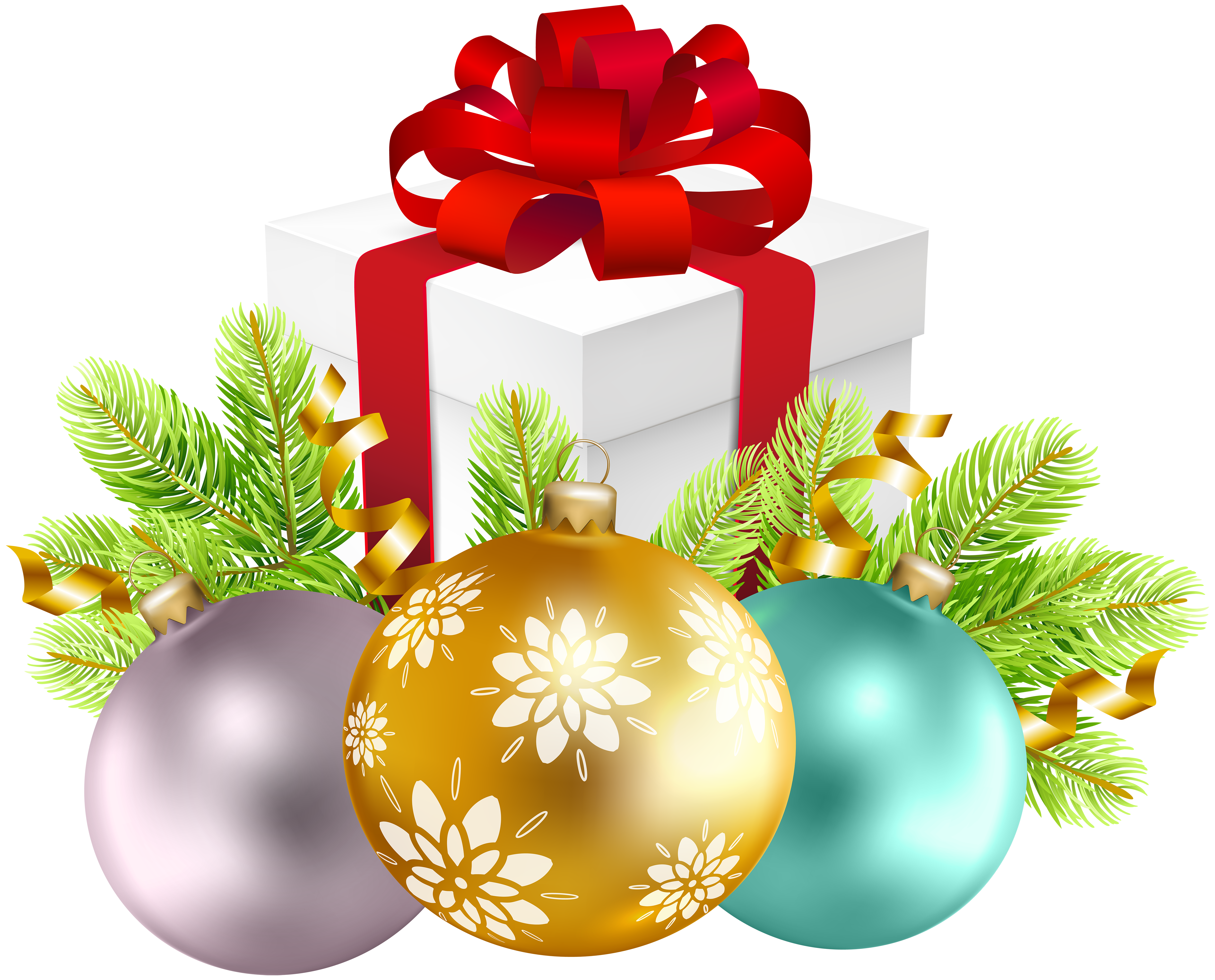 This Clipart Image: "Christmas Decoration with Gift Box PNG Clip Art" is part of