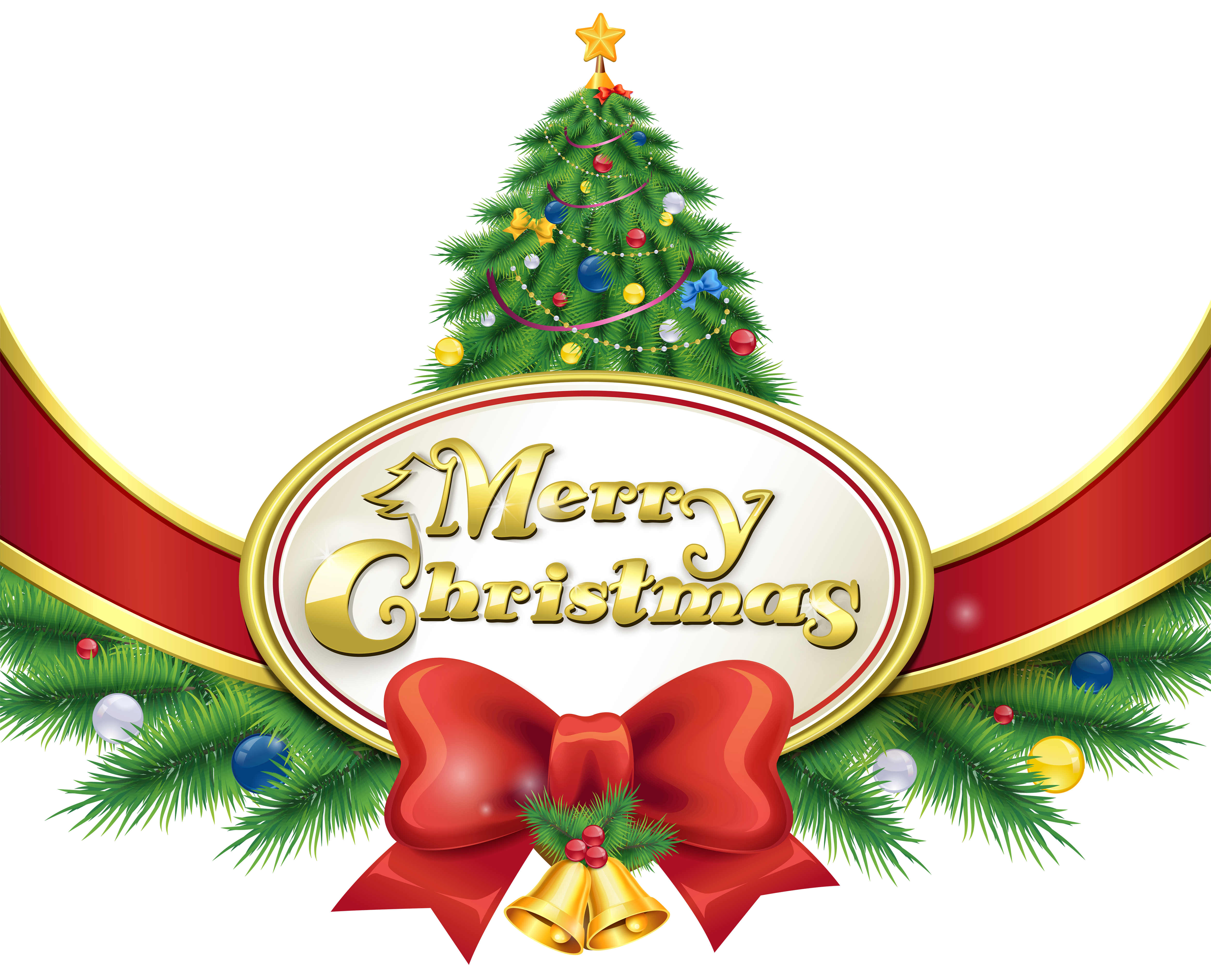 This Clipart Image: "Merry Christmas with Tree and Bow PNG Clipart Image" is part of