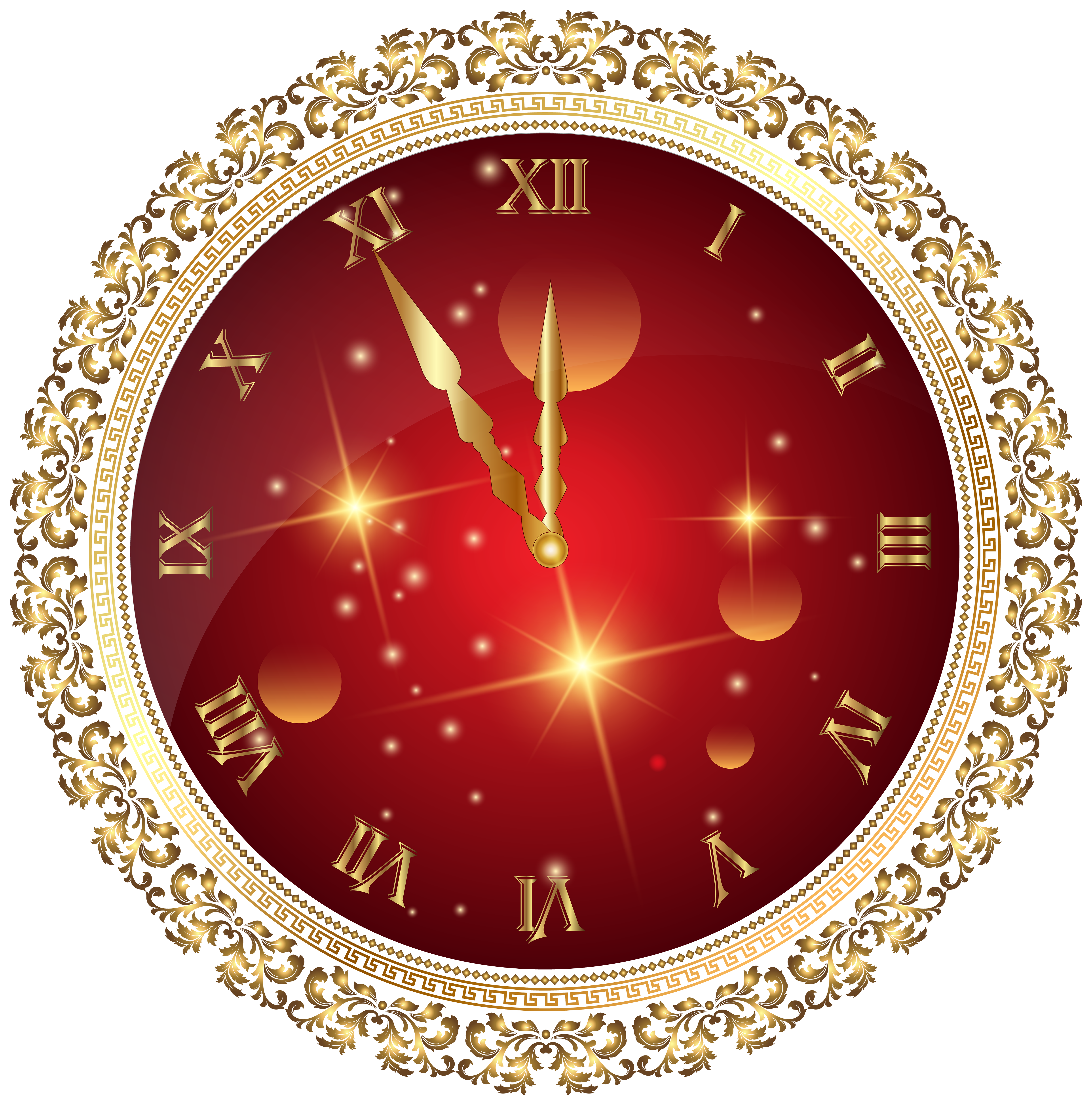 This Clipart Image: "Red New Year's Clock PNG Transparent Clip Art Image" is part of