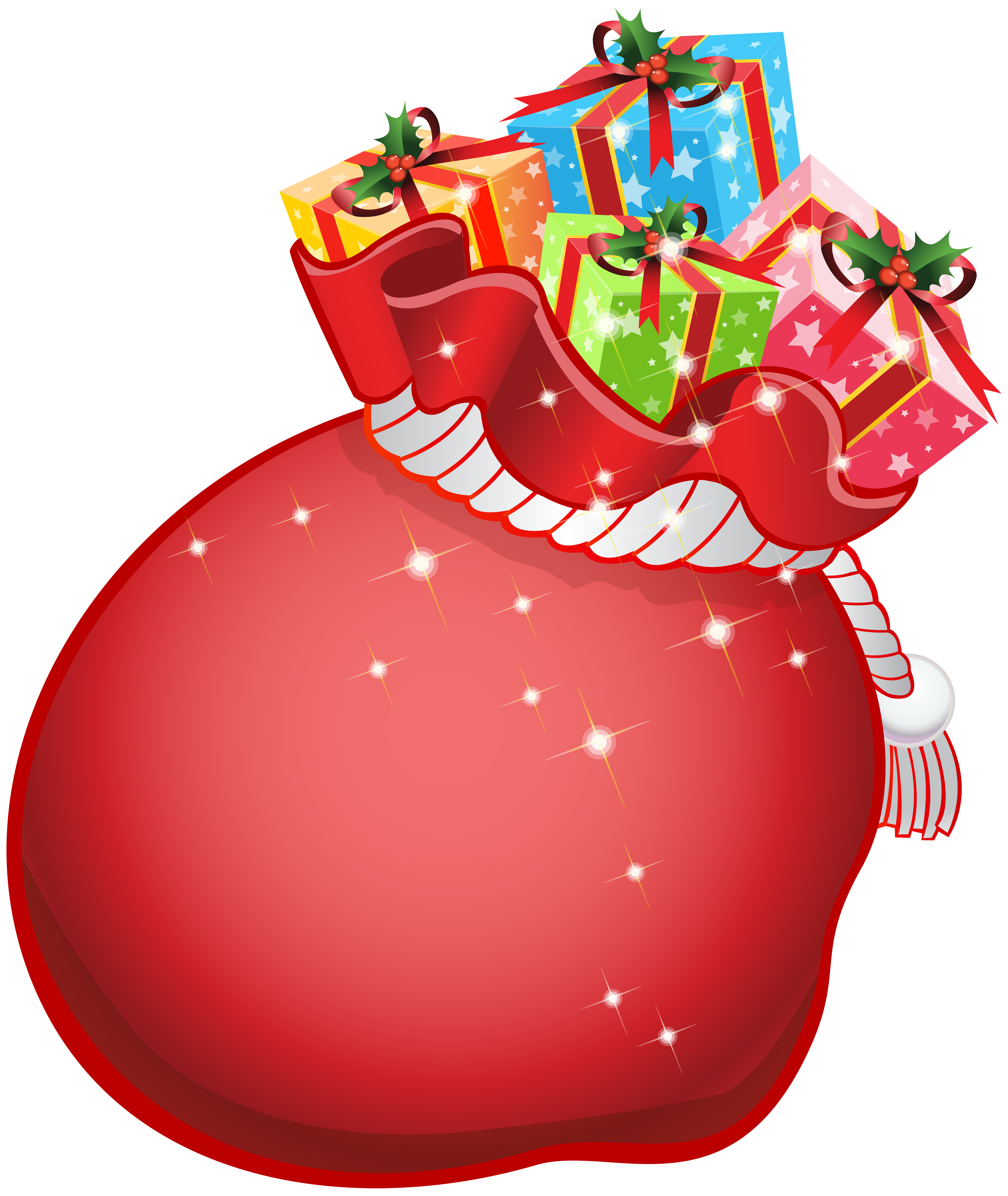 This Clipart Image: "Santa Bag with Gifts Transparent PNG Clip Art" is part of