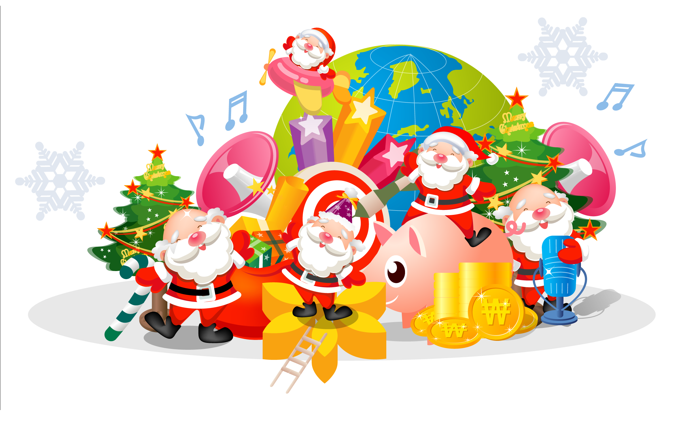 This Clipart Image: "Transparent Christmas Decor with Santas Clipart" is part of