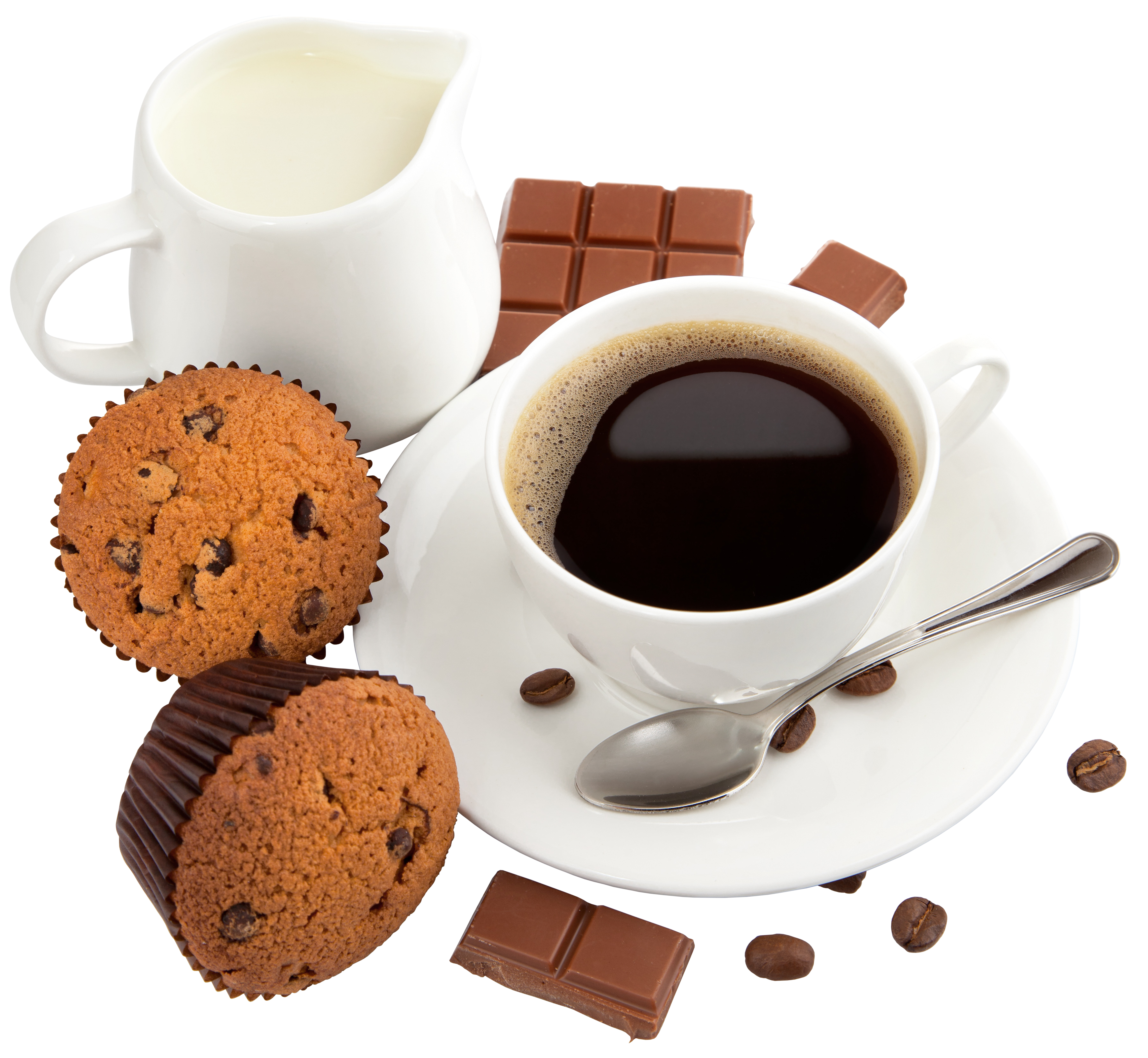 This Clipart Image: "Coffee with Milk Muffins and Chocolate PNG Clipart Picture" is part of