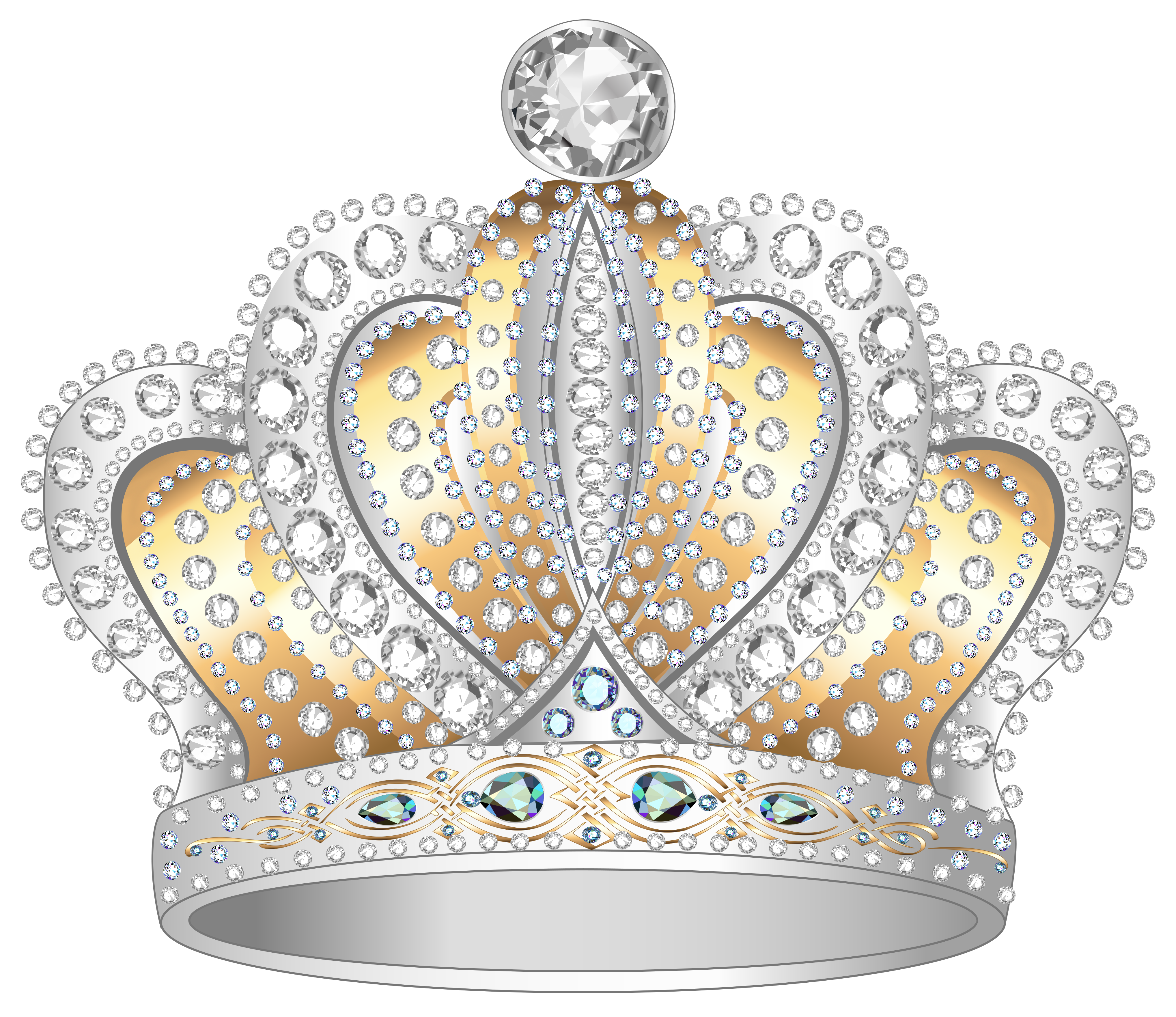 This Clipart Image: "Silver Gold Diamond Crown PNG Clipart Image" is part of