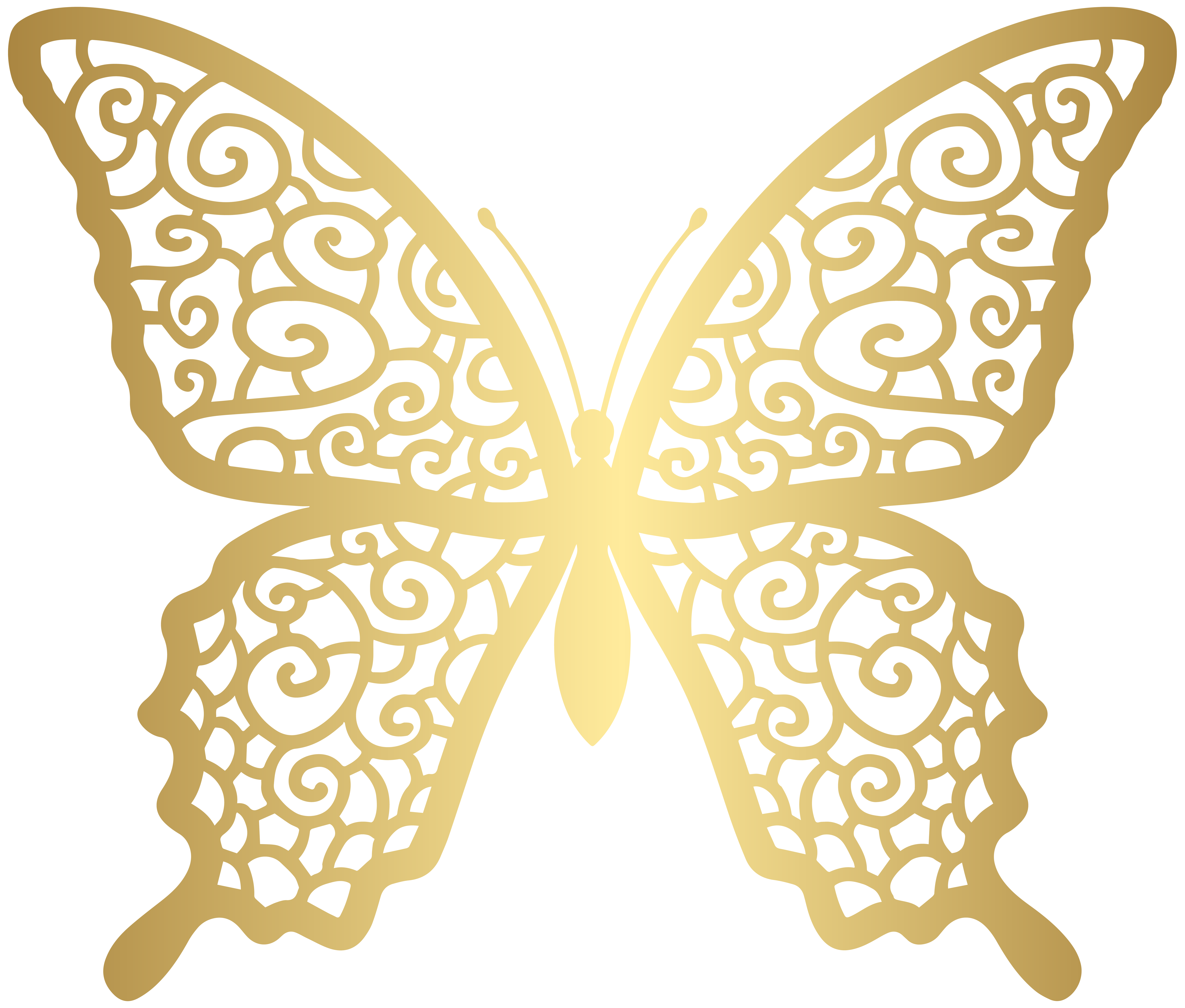 This Clipart Image: "Gold Decorative Butterfly PNG Clip Art Image" is part of
