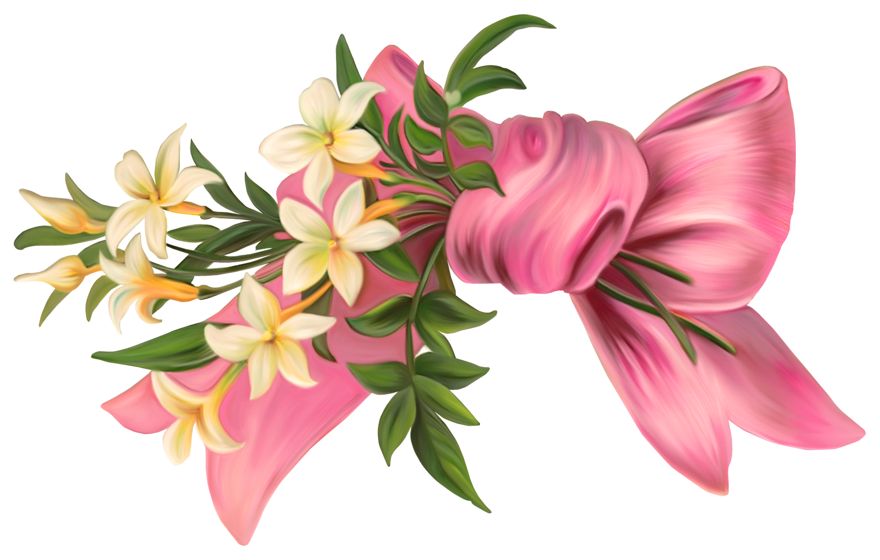 This Image: "Pink Bow with Flowers PNG Element" is part of