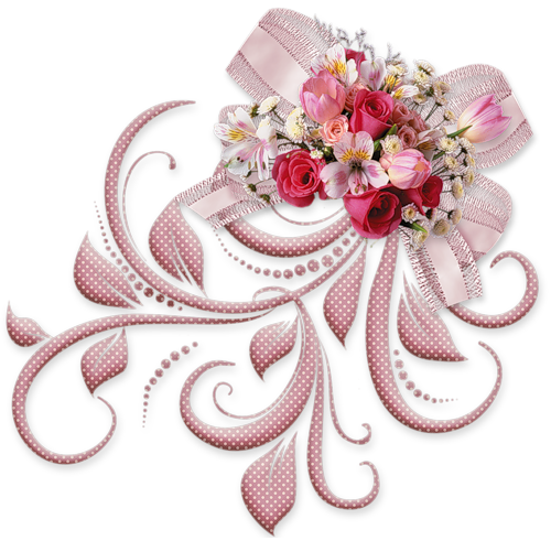 This Image: "Pink Bow with Roses PNG Decorative Element" is part of