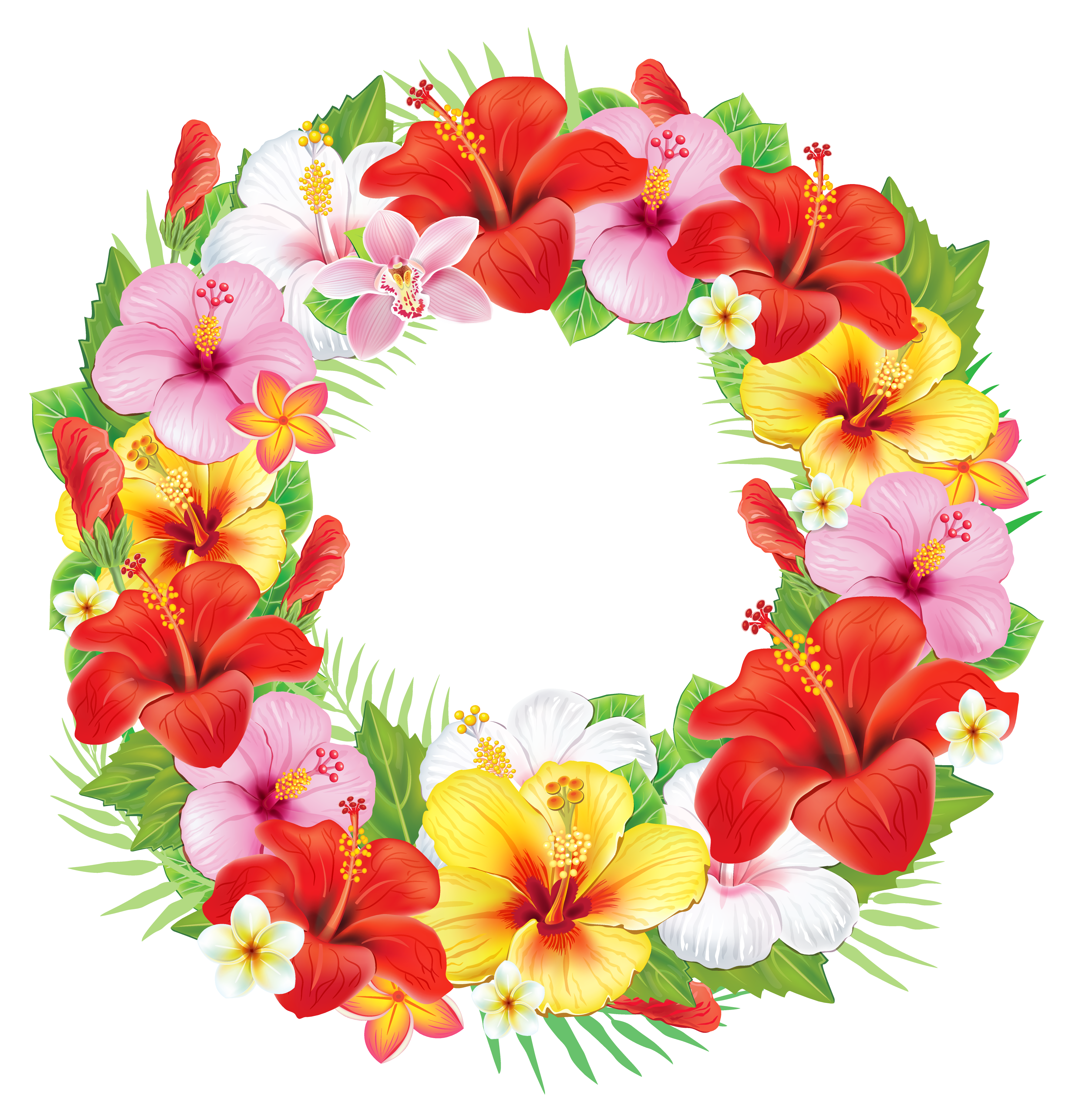 This Clipart Image: "Wreath of Exotic Flowers PNG Clipart Picture" is part of