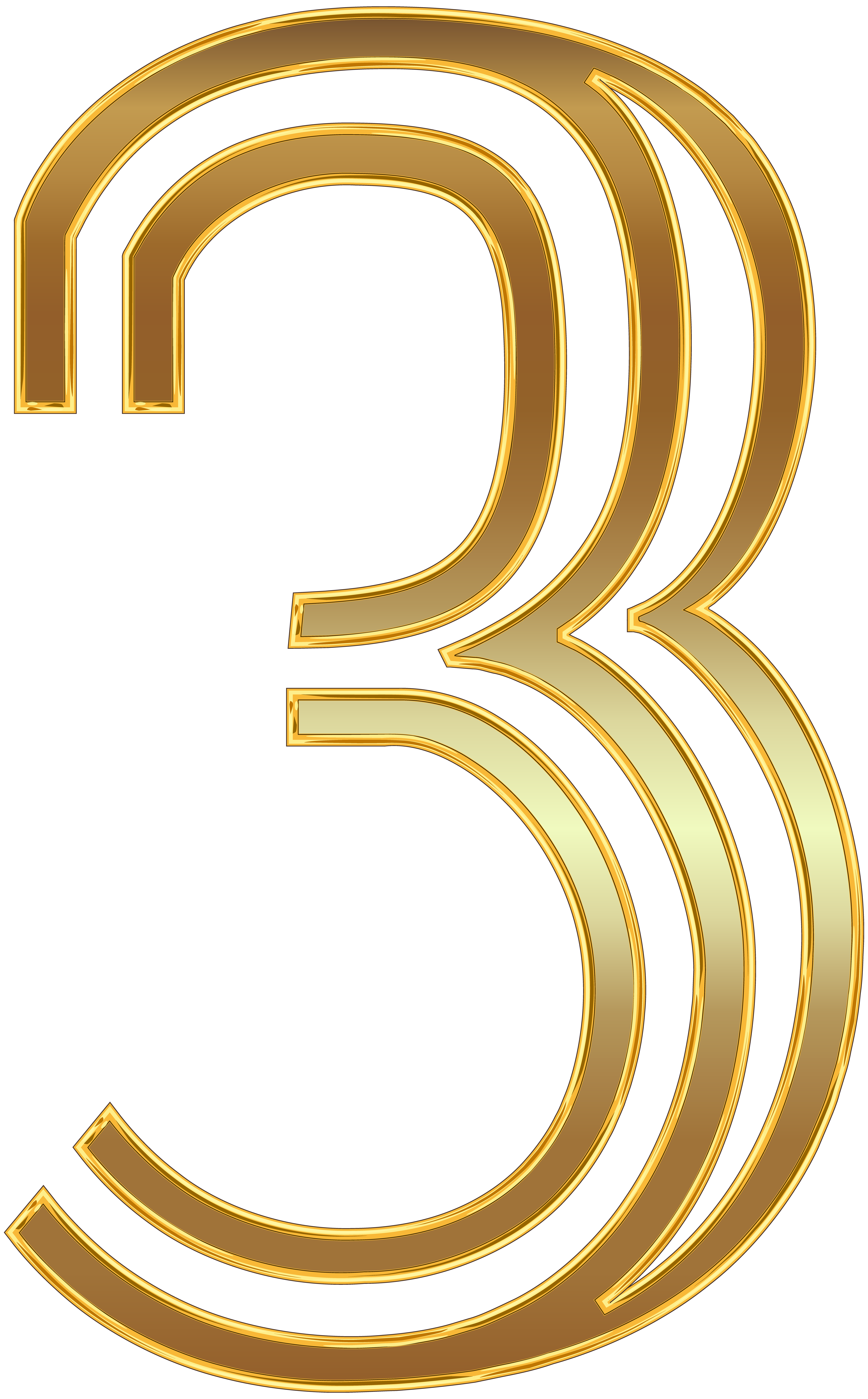 This Clipart Image: "Number Three Gold PNG Clip Art Image" is part of