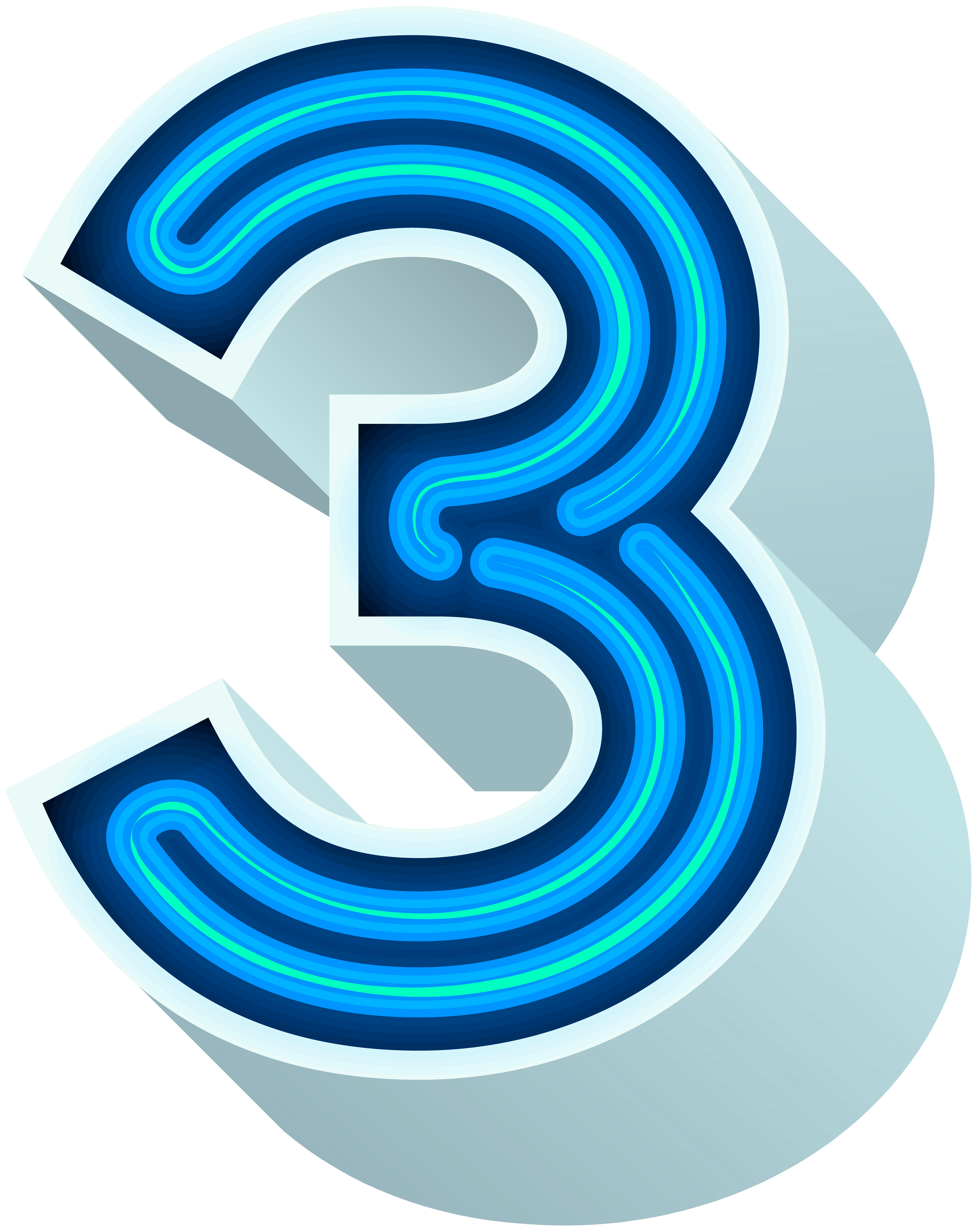 This Clipart Image: "Number Three Neon Blue PNG Clip Art Image" is part of