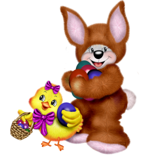 This Clipart Image: "Easter Bunny and Chicken Clipart" is part of