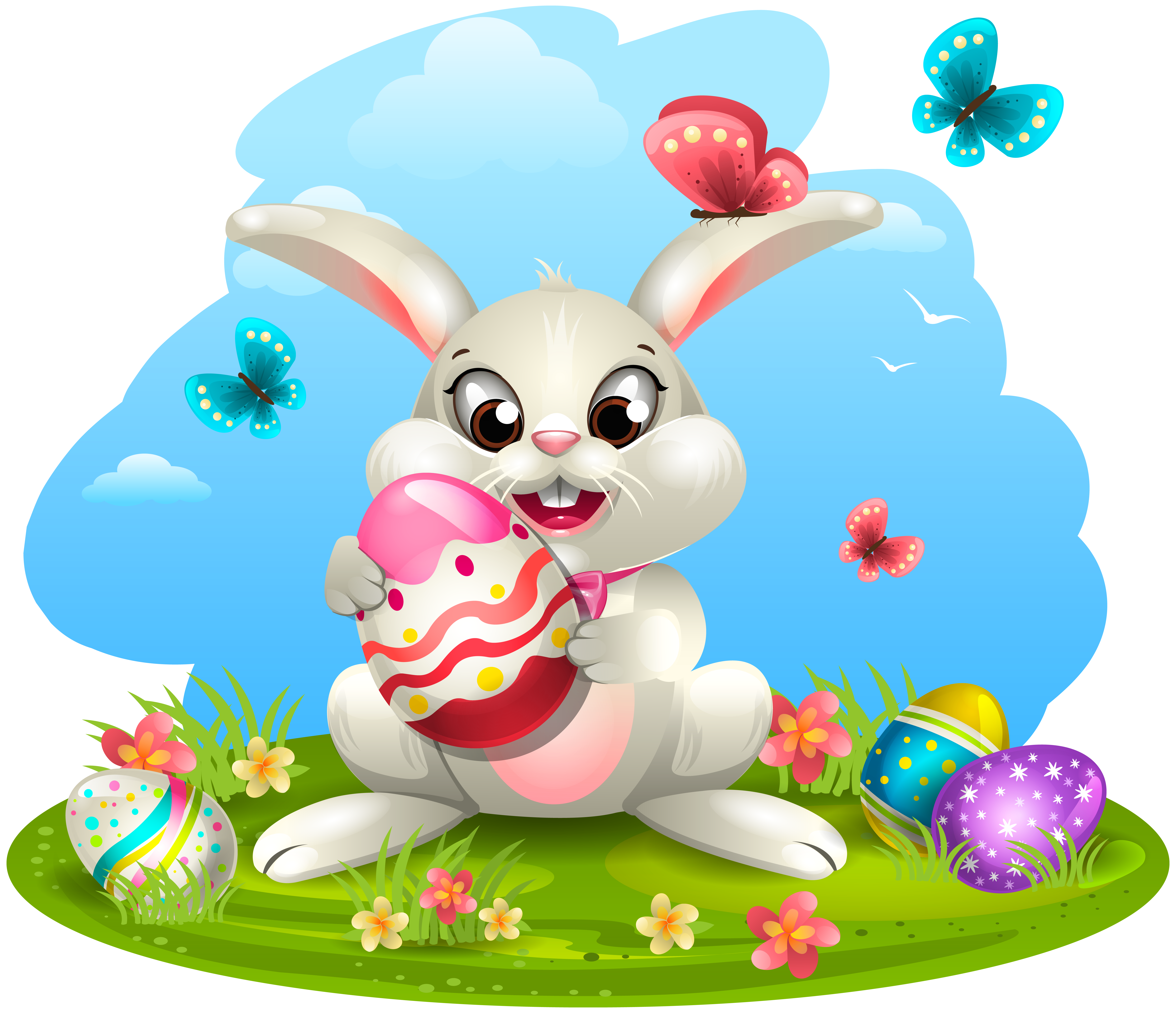 This Clipart Image: "Easter Bunny with Eggs PNG Clipart Image" is part of