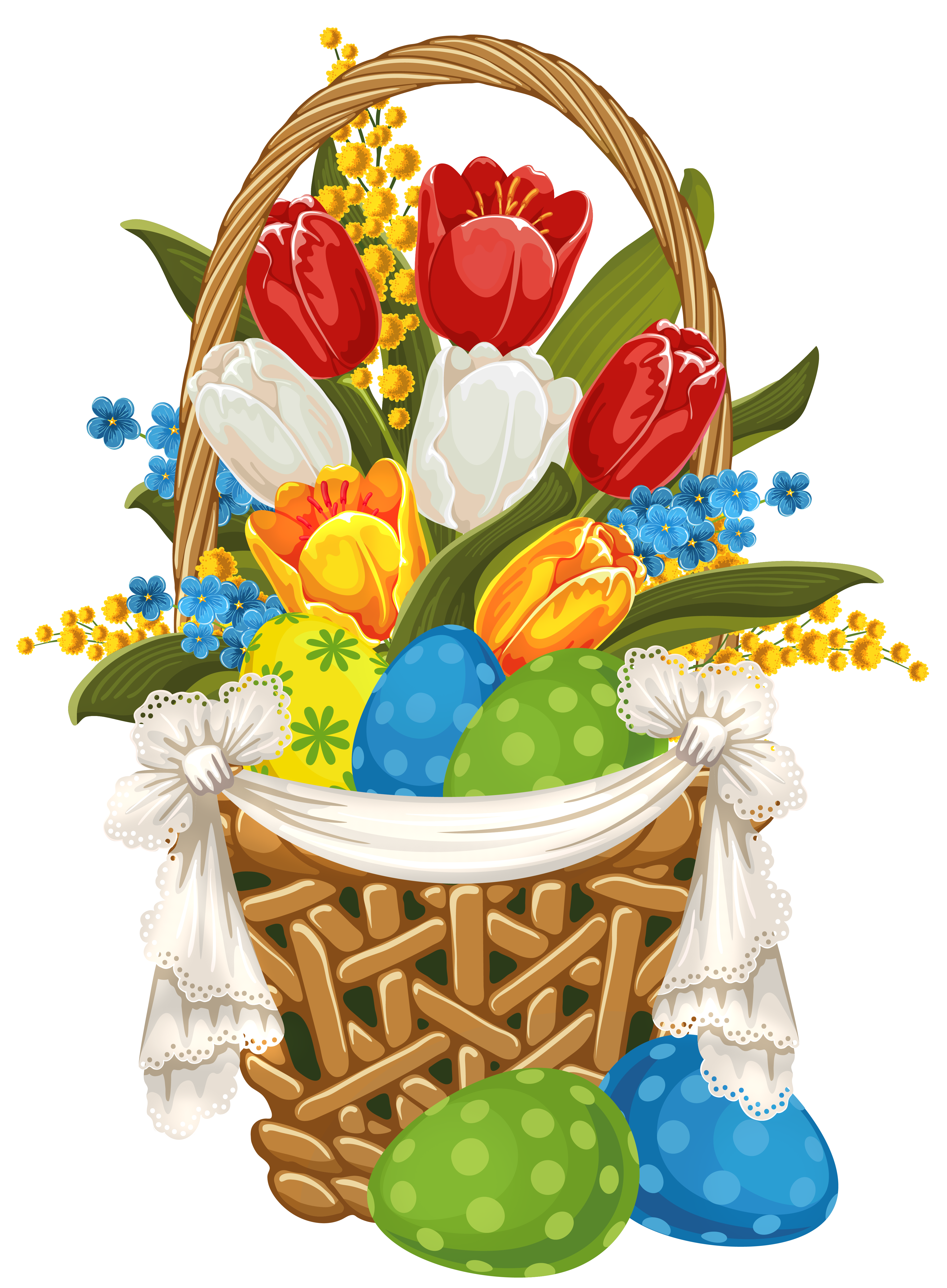 This Clipart Image: "Painted Easter Basket with Easter Eggs PNG Clipart" is part of