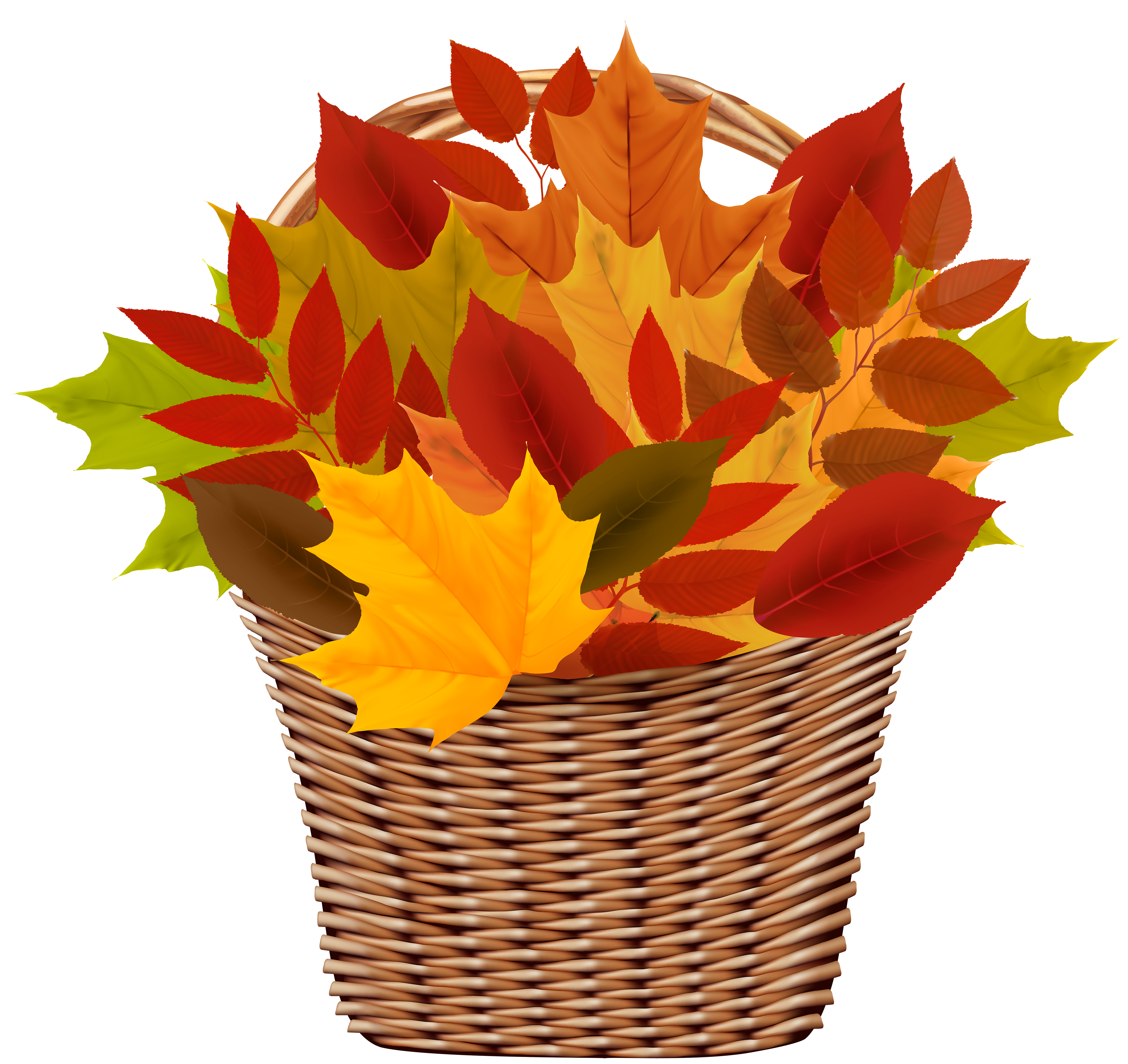 This Clipart Image: "Basket with Autumn Leaves PNG Clipart" is part of