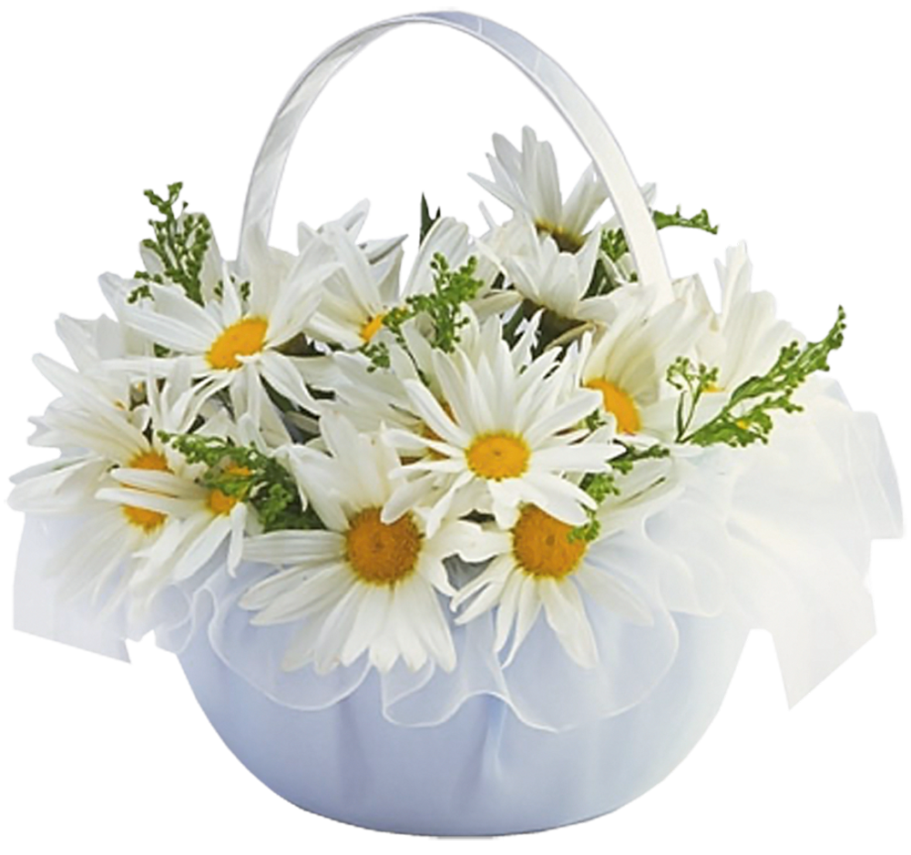 This Clipart Image: "Basket with Daisies Transparent Clipart" is part of