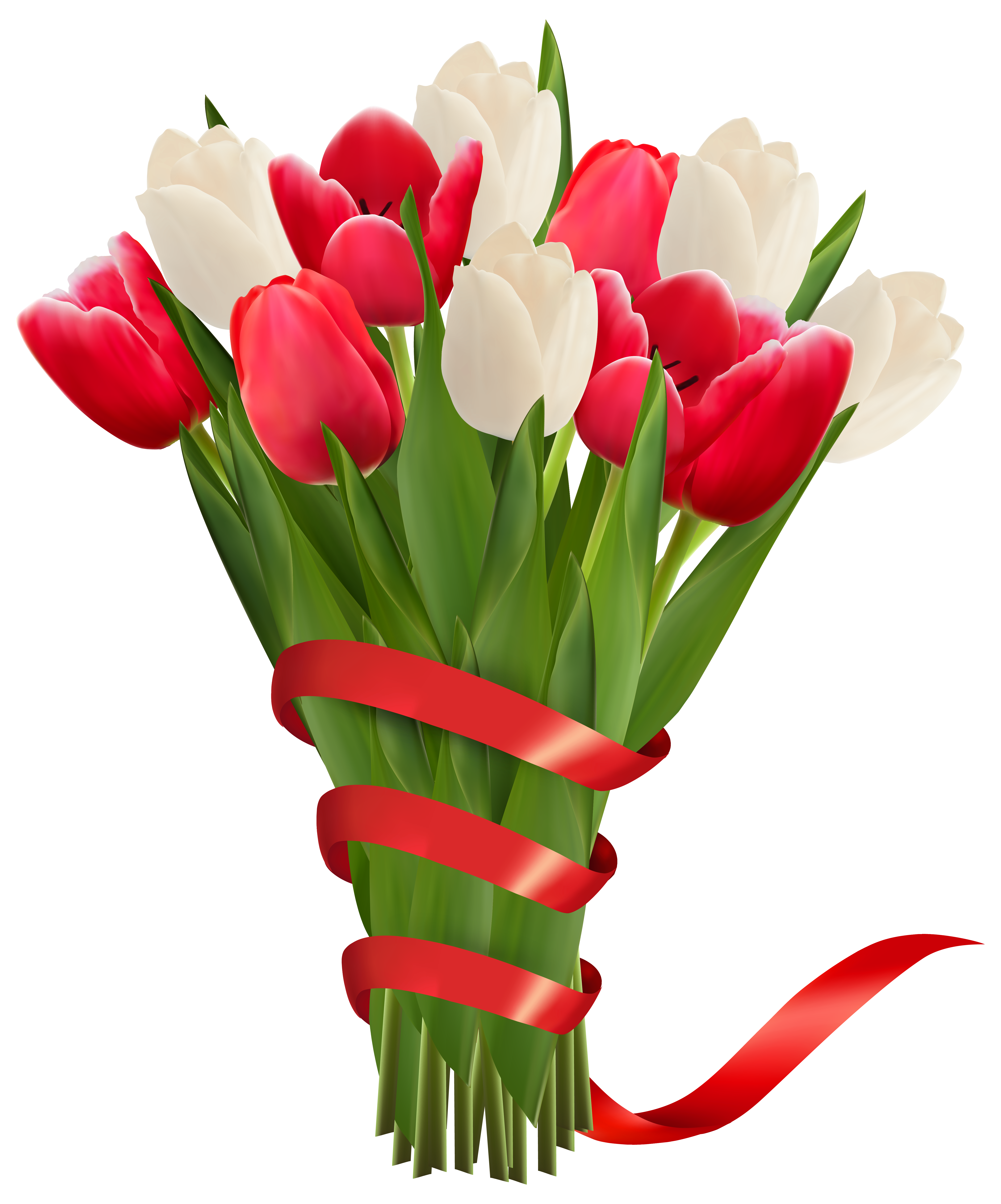 This Clipart Image: "White and Red Tulips with Ribbon PNG Clipart Image" is part of
