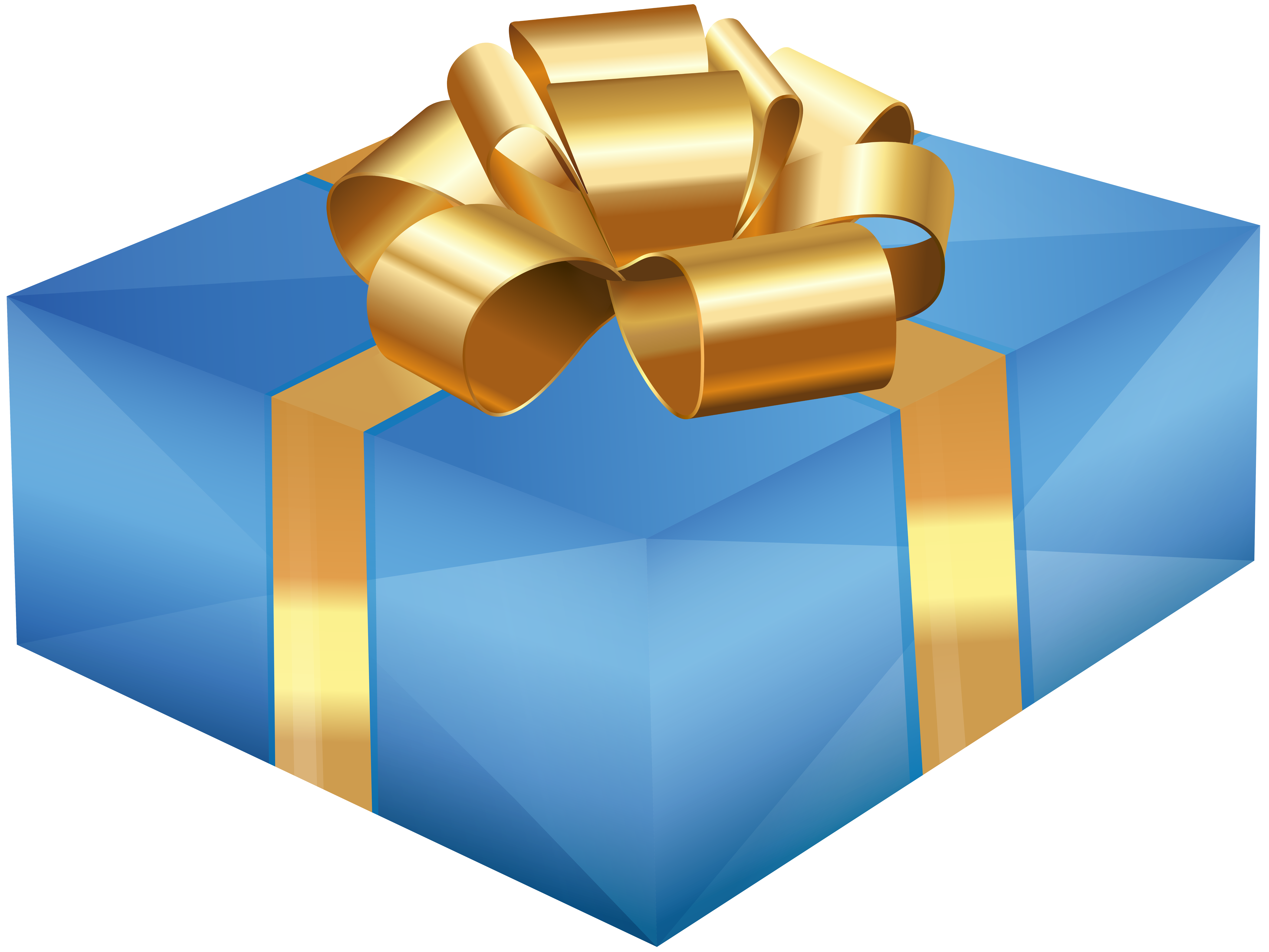 This Clipart Image: "Blue Gift Box with Gold Bow PNG Clipart" is part of