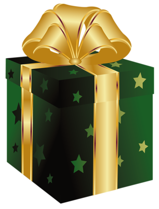 This Clipart Image: "Green PNG Present with Gold Bow Clipart" is part of