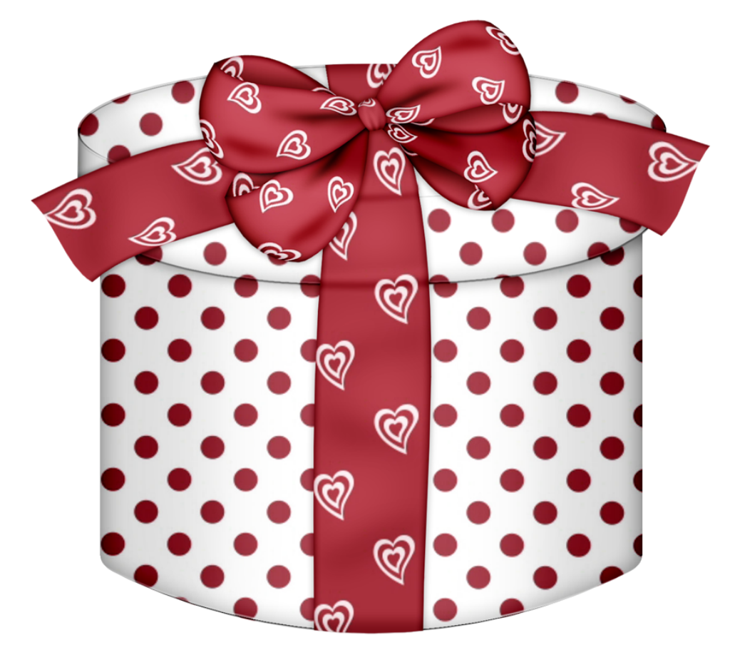 This Clipart Image: "White Round Gift Box white Red Heart PNG Clipart" is part of
